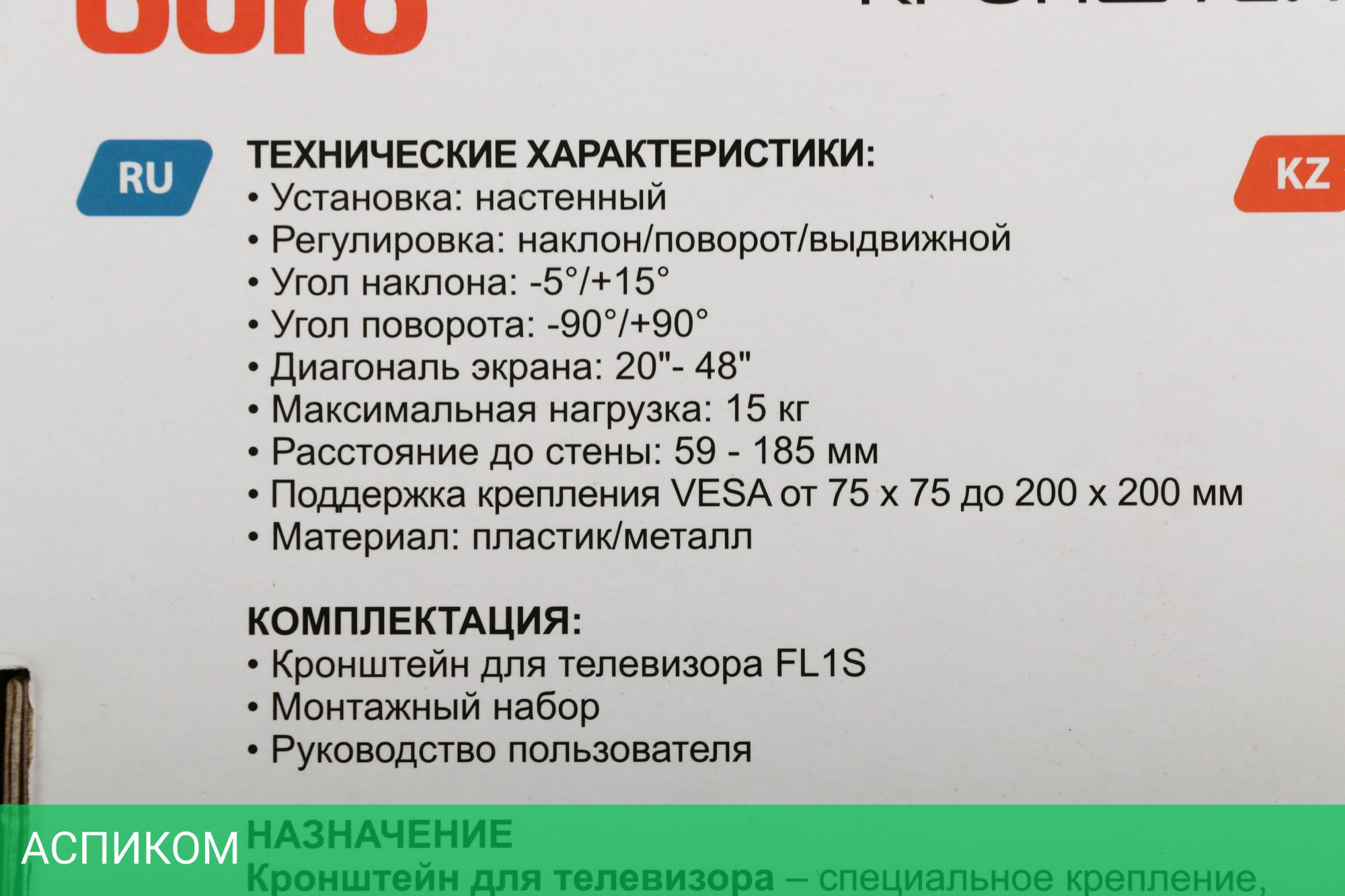 для телевизора / настенный / 20.0 / 48.0 / черный / 20 / 180.0
