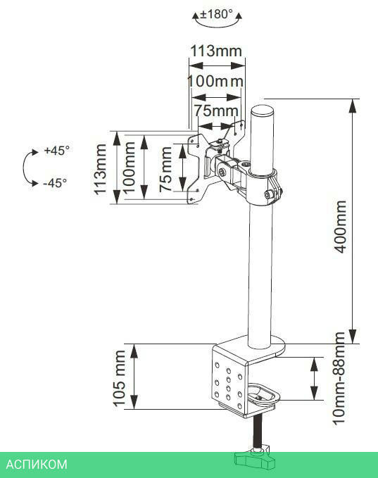 для монитора / черный / настольный / 17.0 / 32.0 / 85 / 360.0