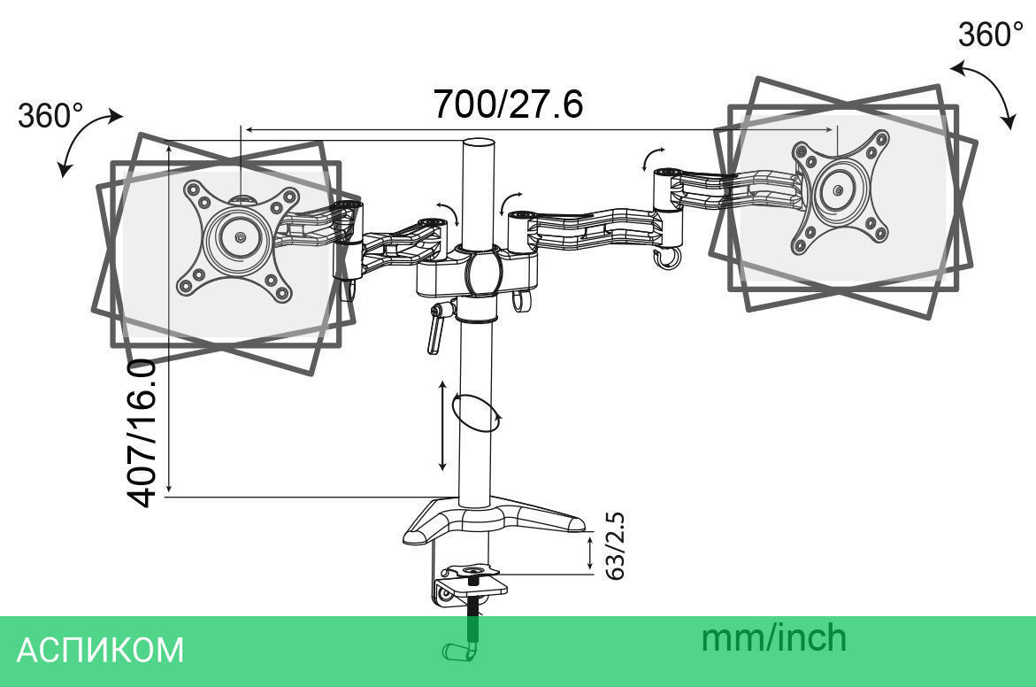 для монитора / настольный / 13.0 / 27.0 / черный / 15 / 180.0