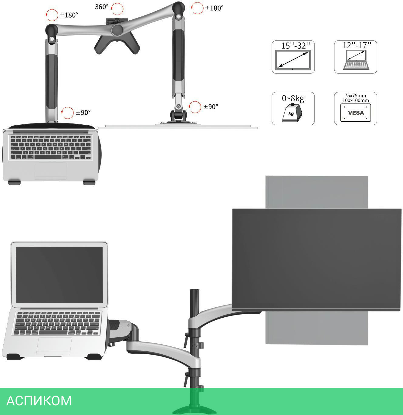 для ноутбука / настольный / 13.0 / 27.0 / черный; серебристый / 85 / 180.0