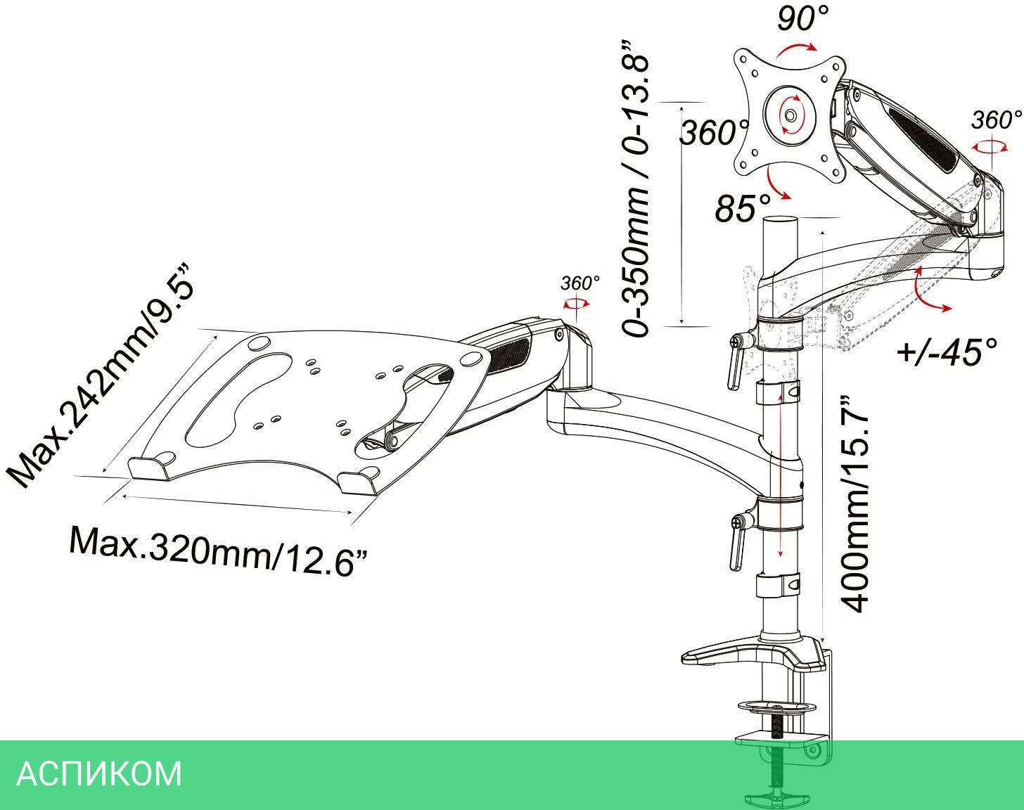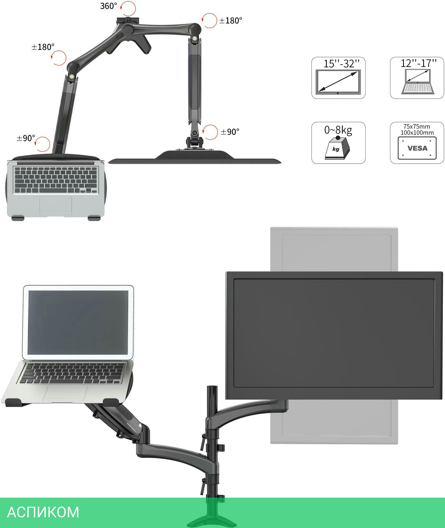 для монитора / настольный / 13.0 / 27.0 / черный / 85 / 180.0