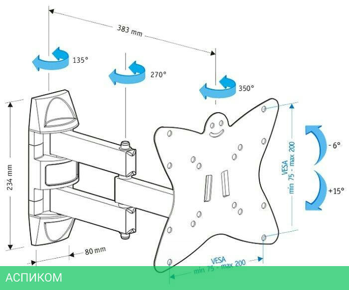 для телевизора / настенный / 20.0 / 37.0 / черный / 15