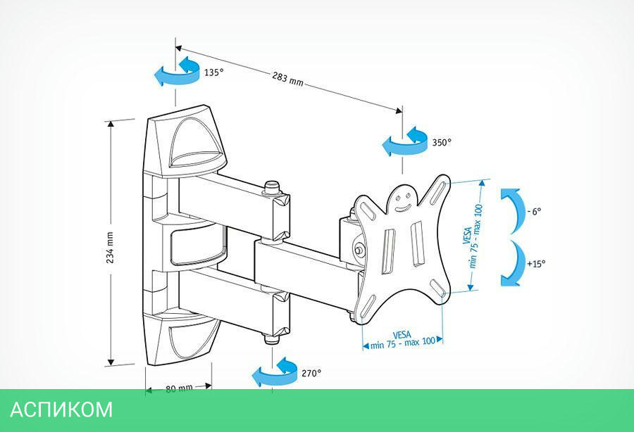 для телевизора / настенный / 10.0 / 26.0 / черный / 15 / 350.0
