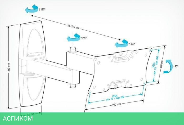 для телевизора / настенный / 10.0 / 32.0 / черный / 15 / 350.0