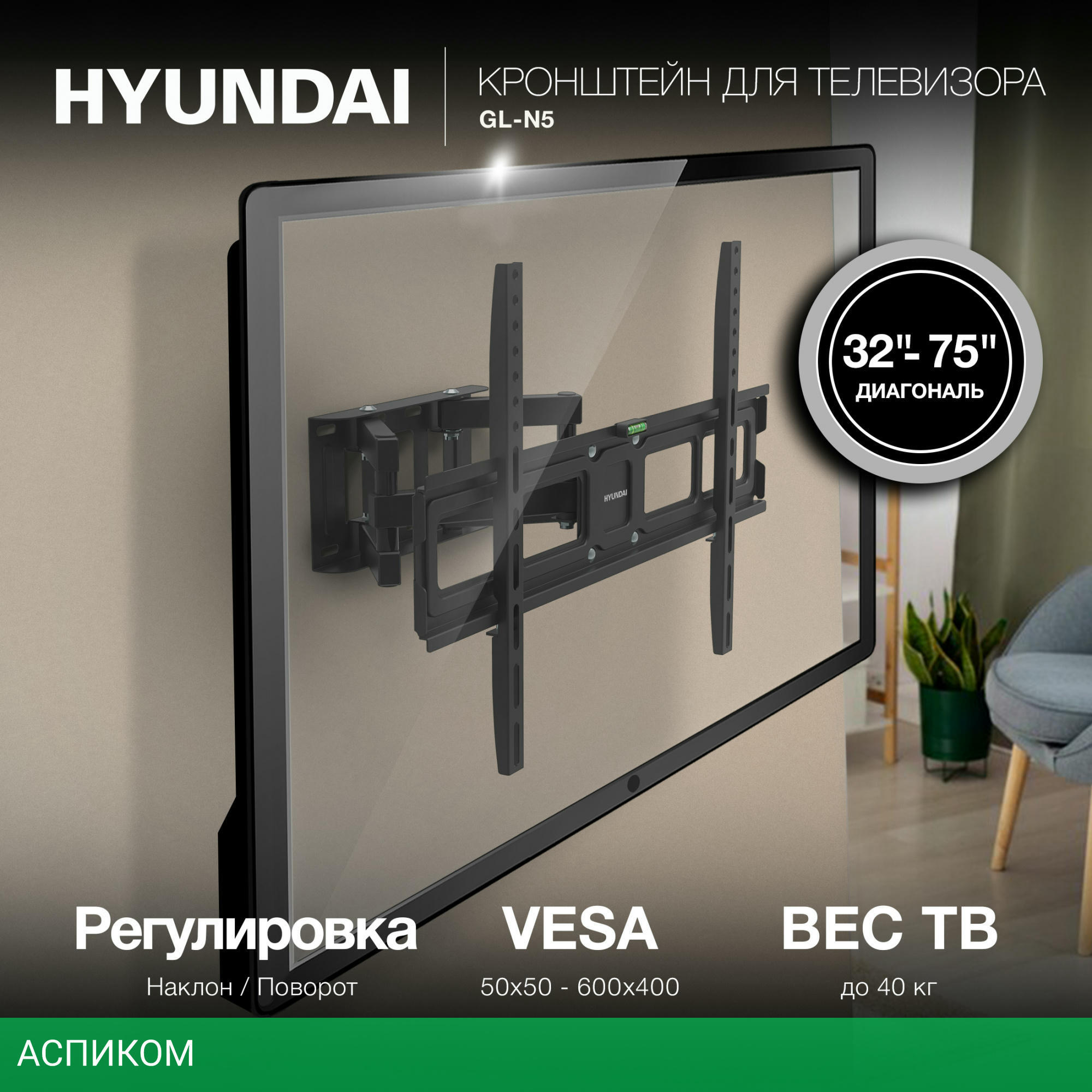 для телевизора / настенный / 32.0 / 75.0 / черный / 12 / 60.0