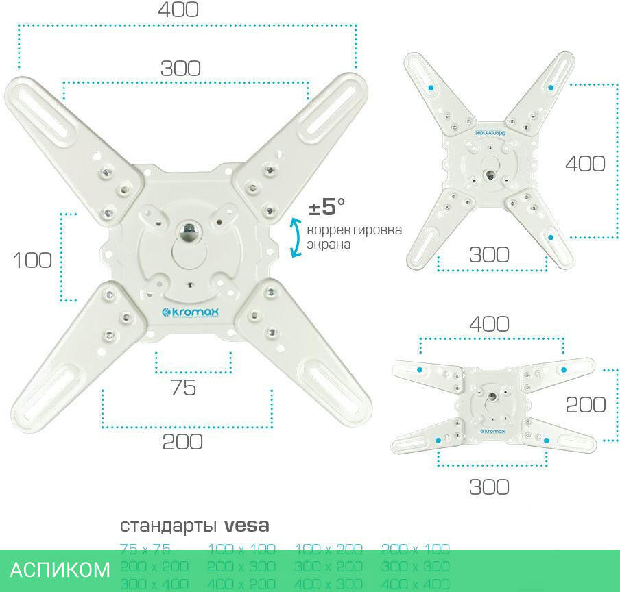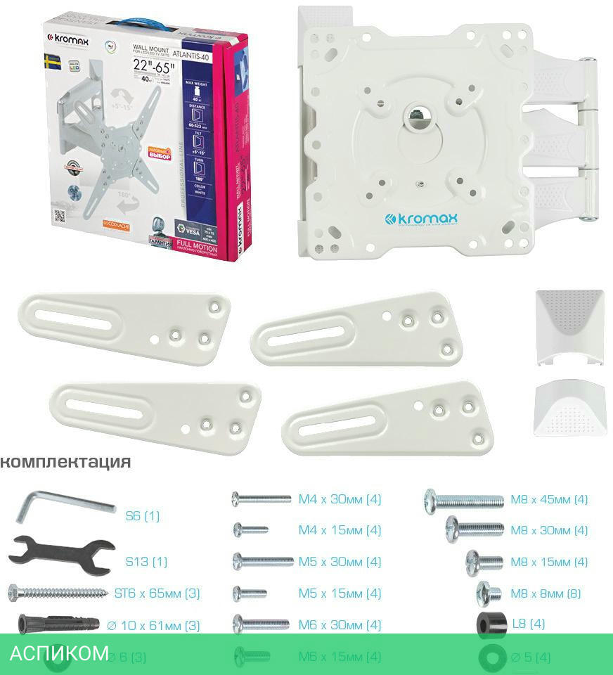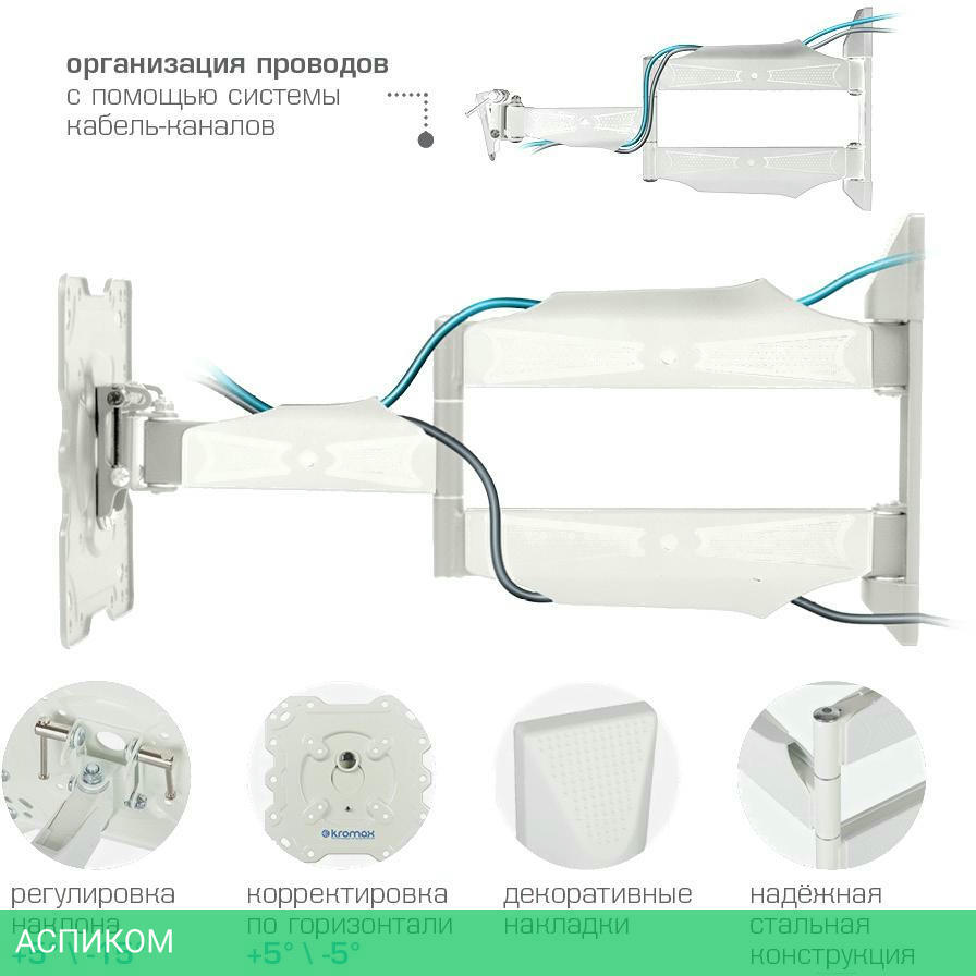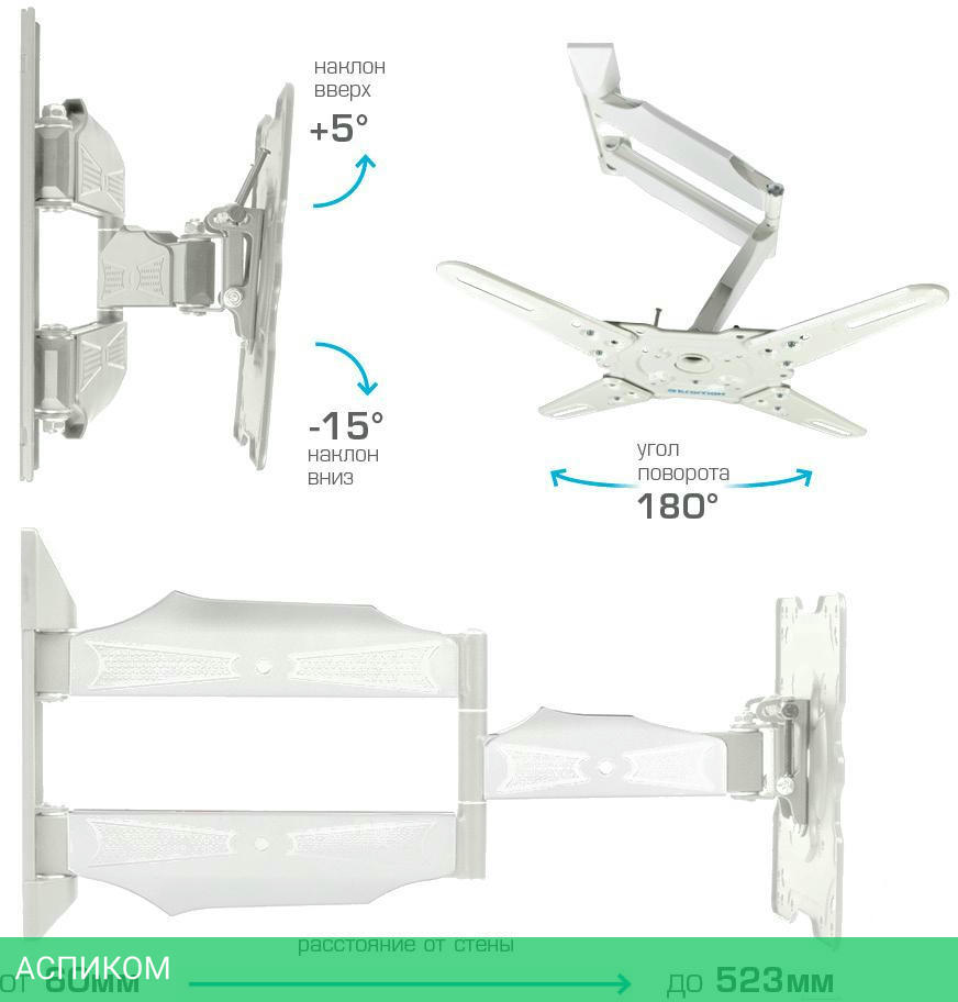 для телевизора / настенный / 22.0 / 65.0 / белый / 15 / 180.0
