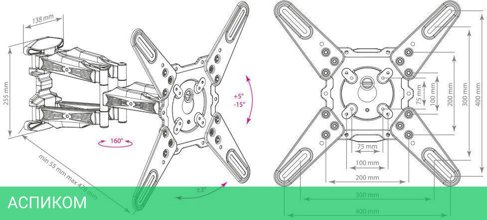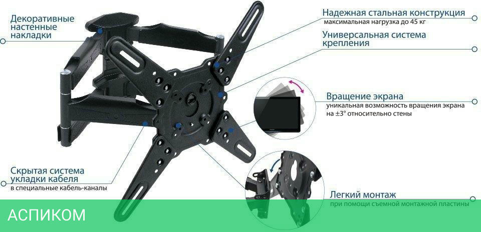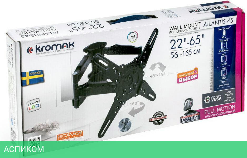 для телевизора / серый / настенный / 22.0 / 65.0 / 15 / 160.0