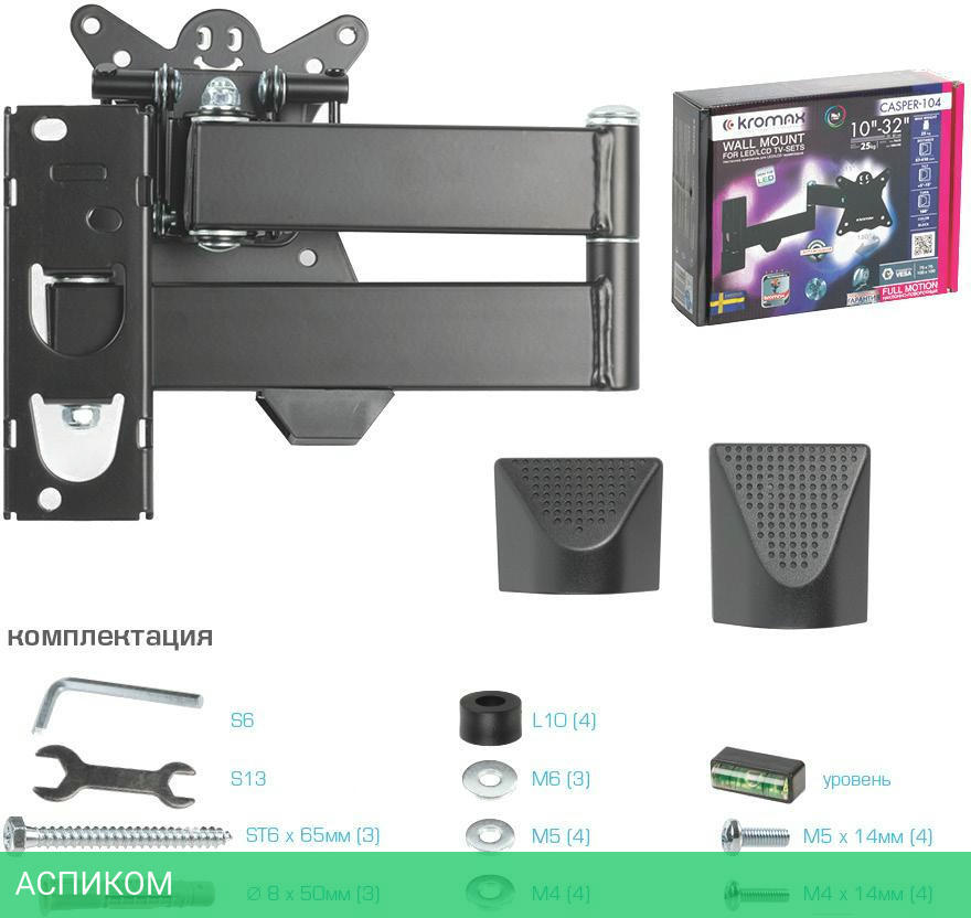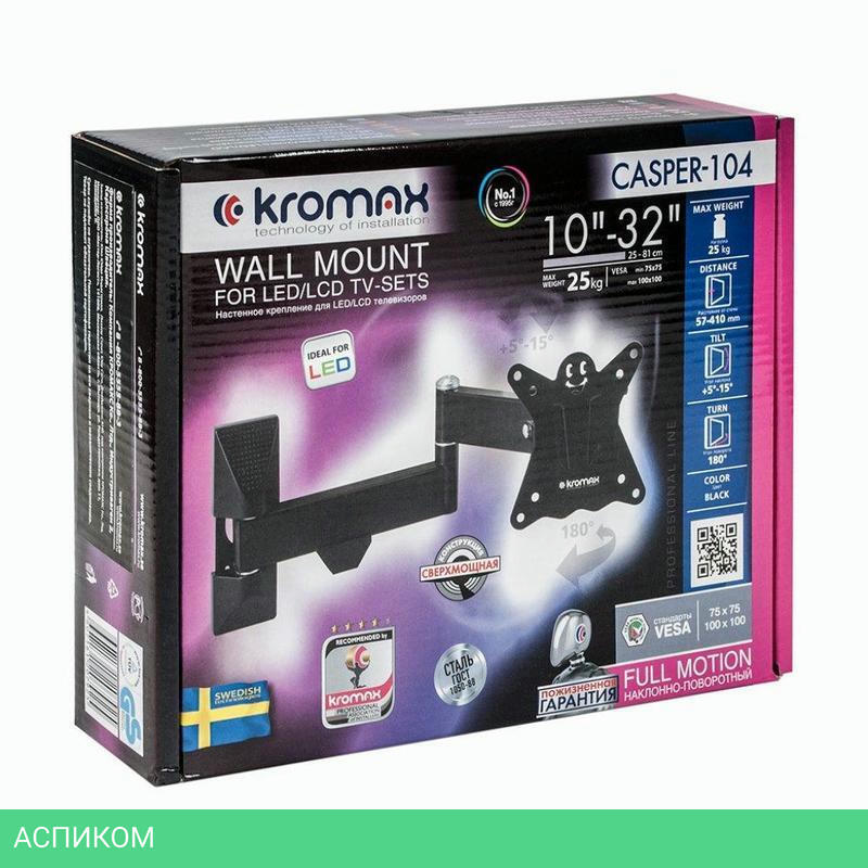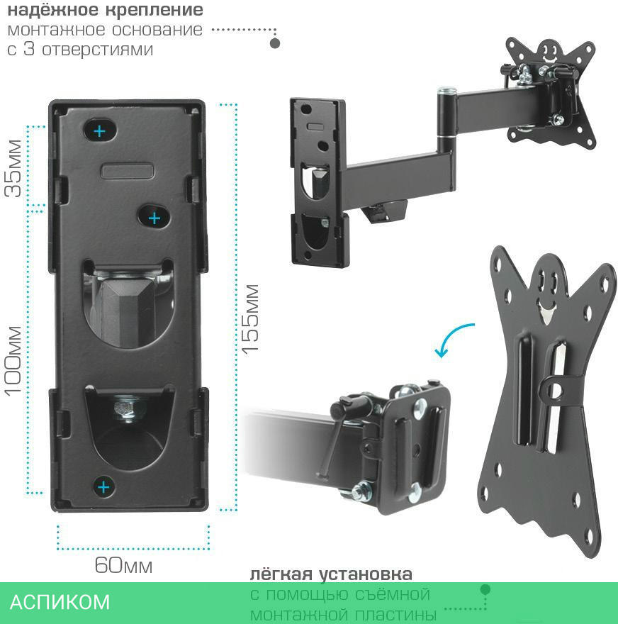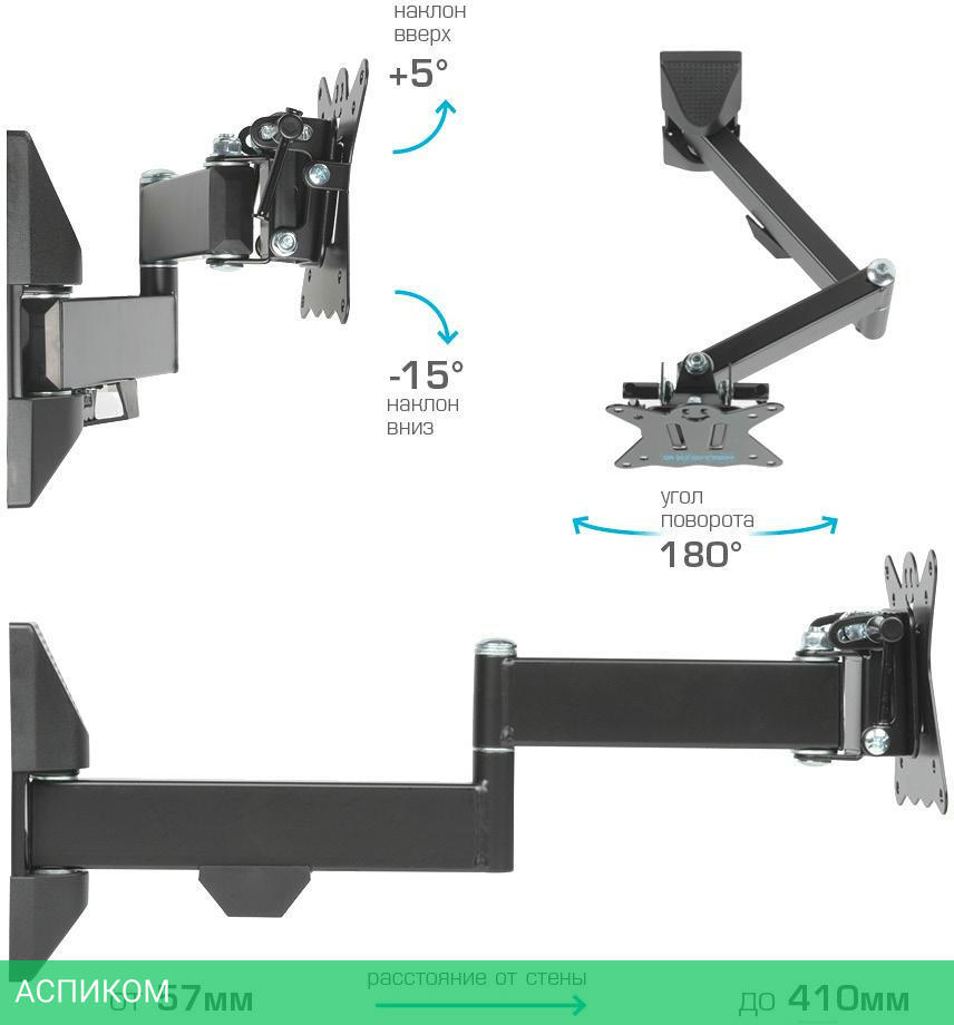 для телевизора / настенный / 10.0 / 32.0 / черный / 15 / 180.0