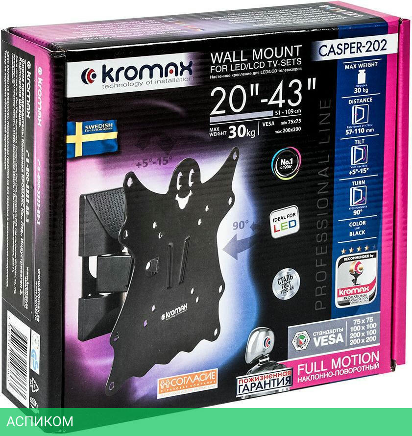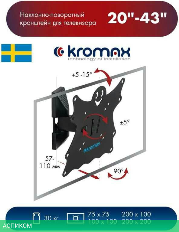 для телевизора / настенный / 15.0 / 40.0 / черный / 15 / 90.0