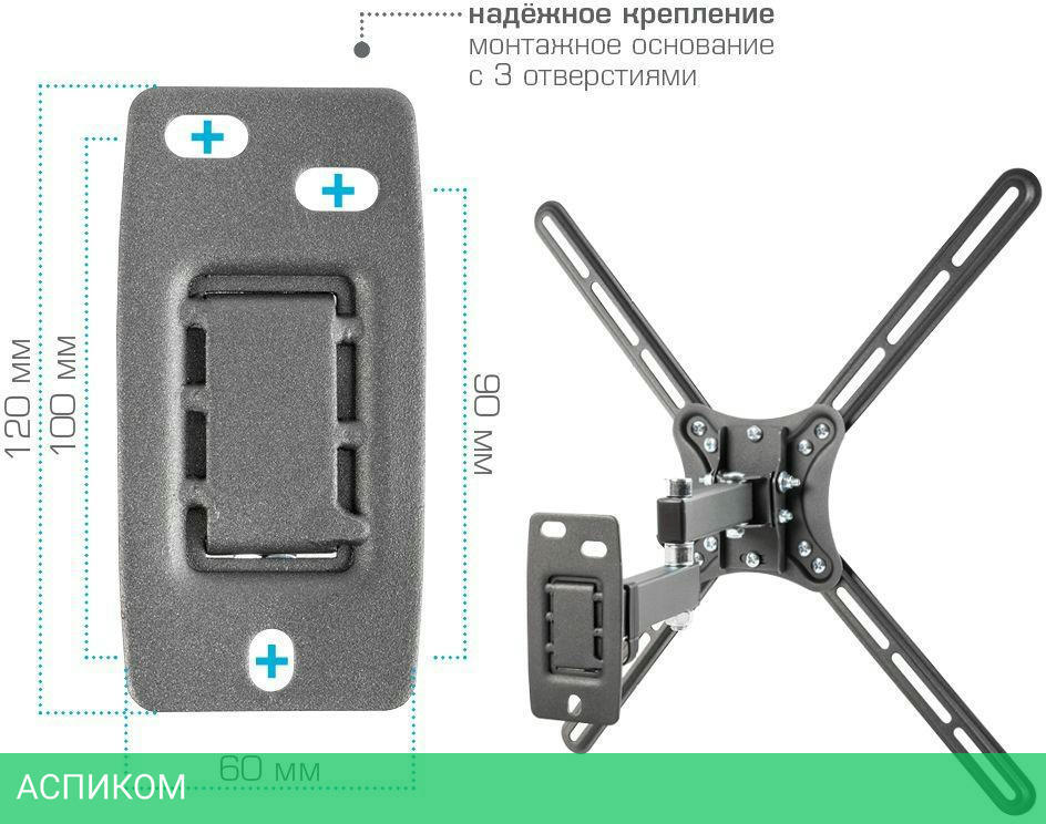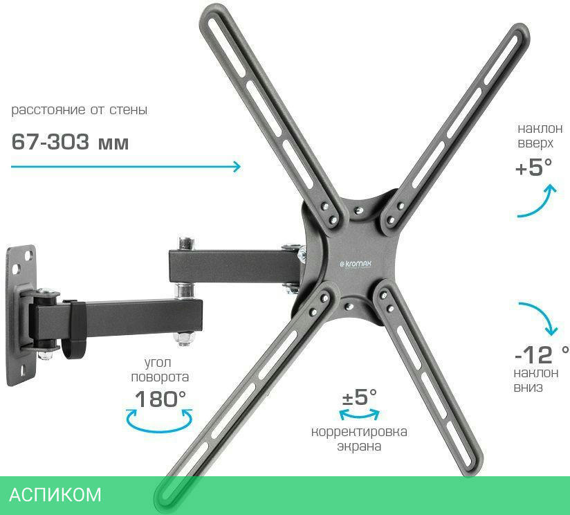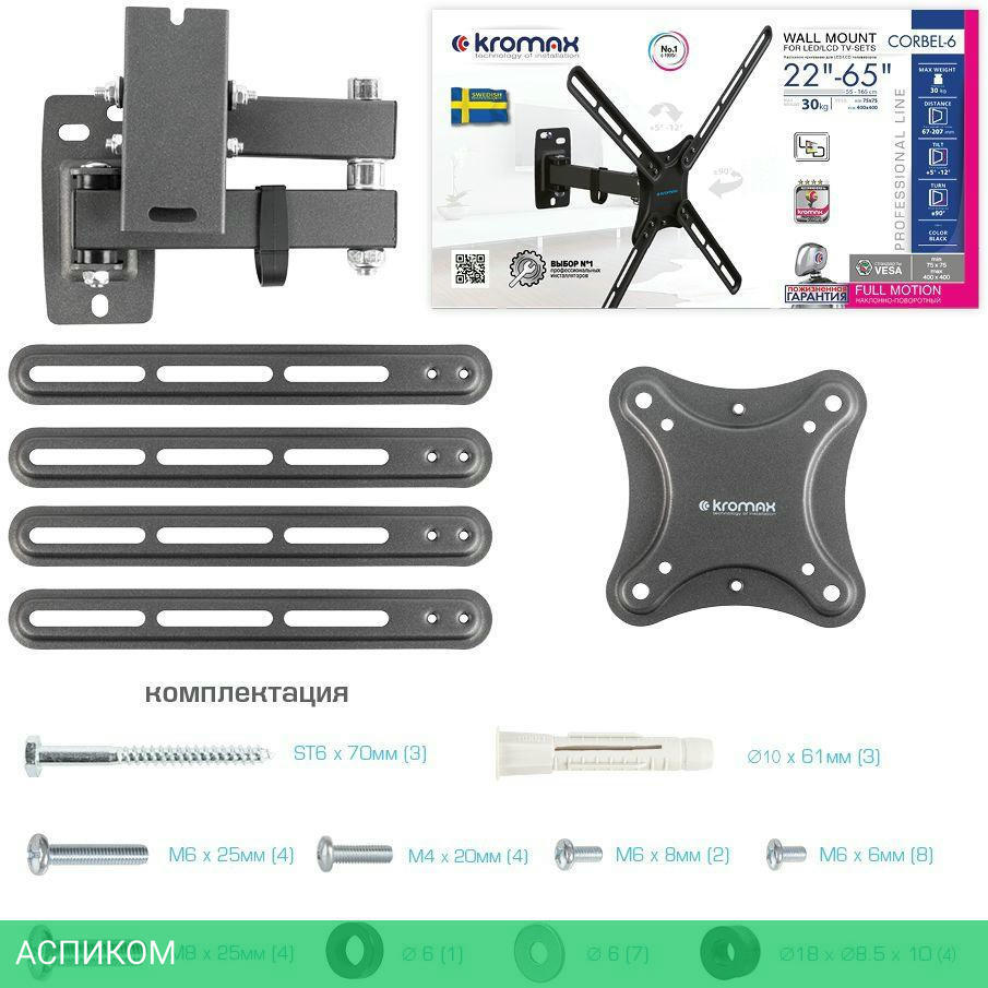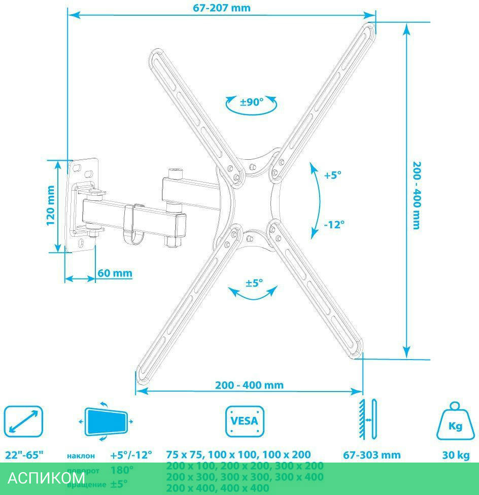 для телевизора / черный / настенный / 22.0 / 65.0 / 5 / 90.0