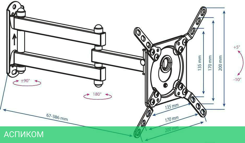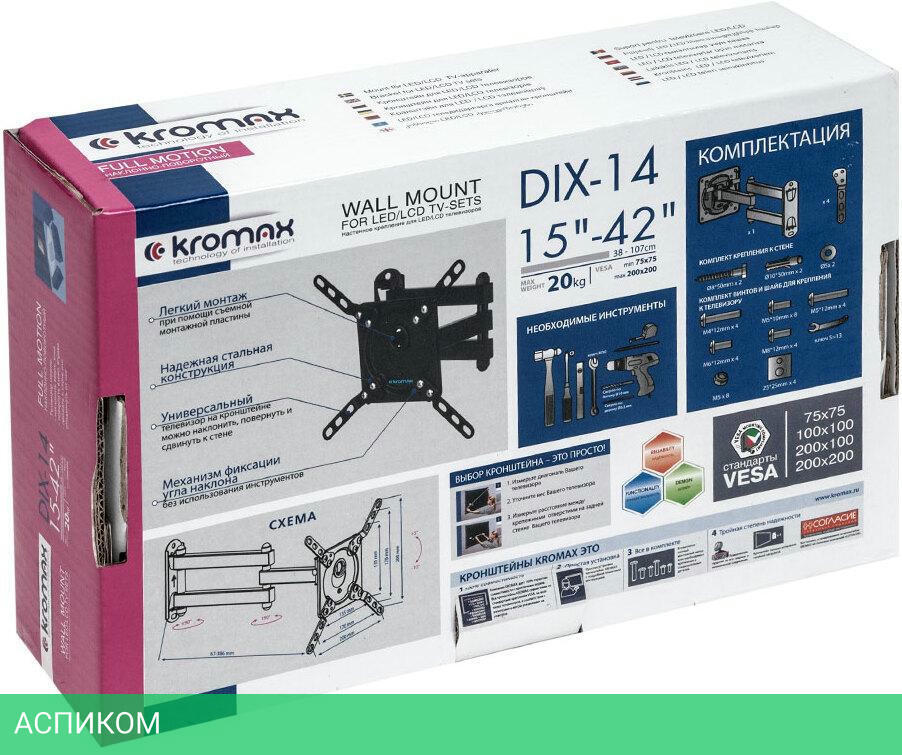 для телевизора / настенный / 15.0 / 42.0 / черный / 10 / 180.0