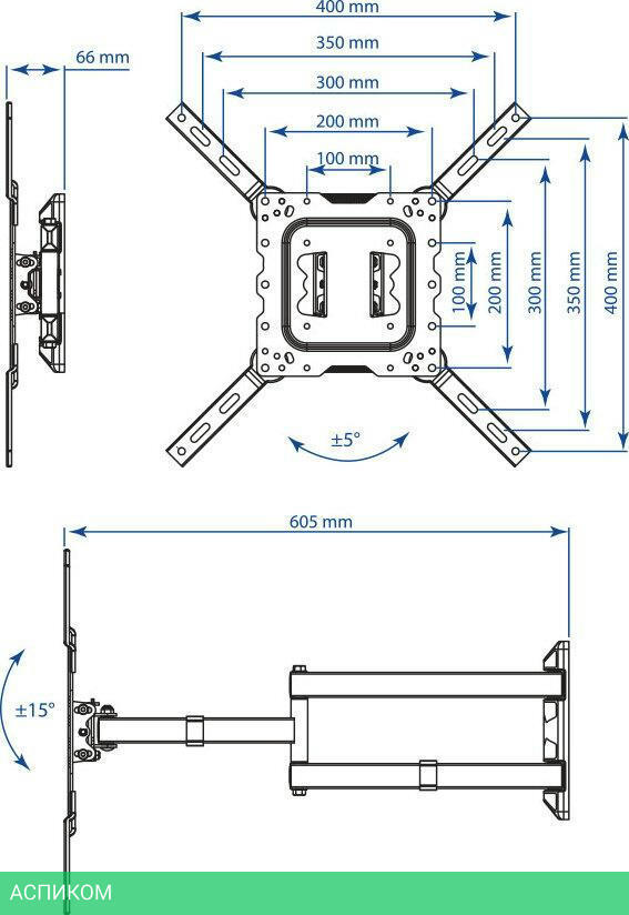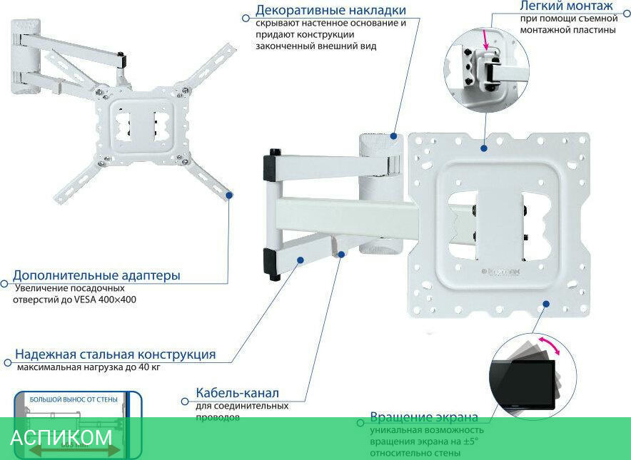 для телевизора / настенный / 22.0 / 65.0 / белый / 15 / 180.0