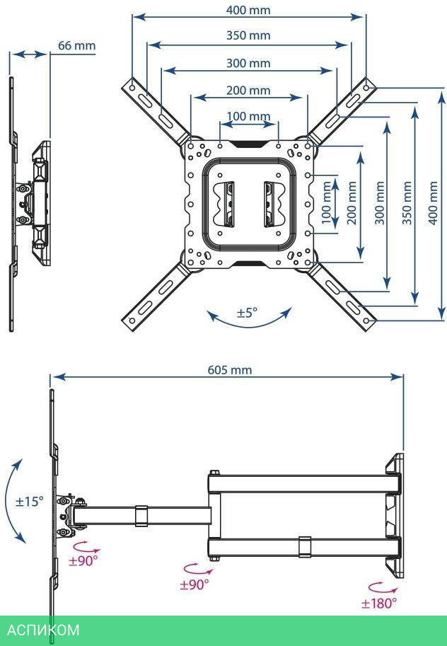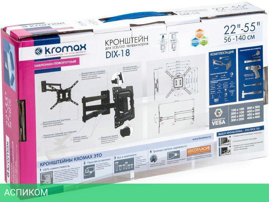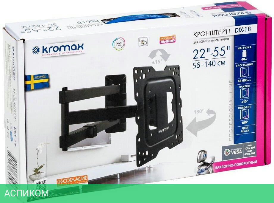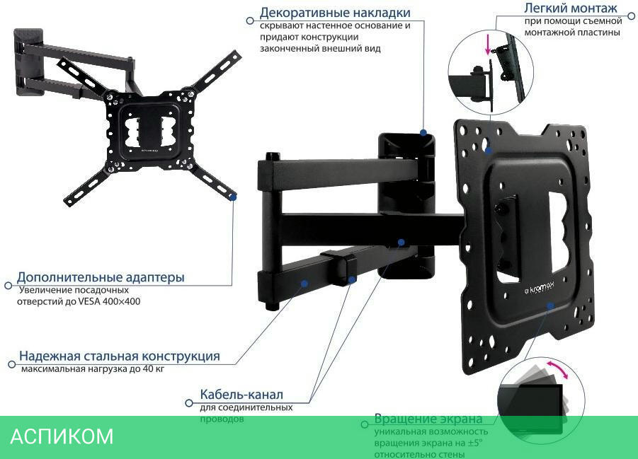 для телевизора / черный / настенный / 22.0 / 55.0 / 15 / 180.0