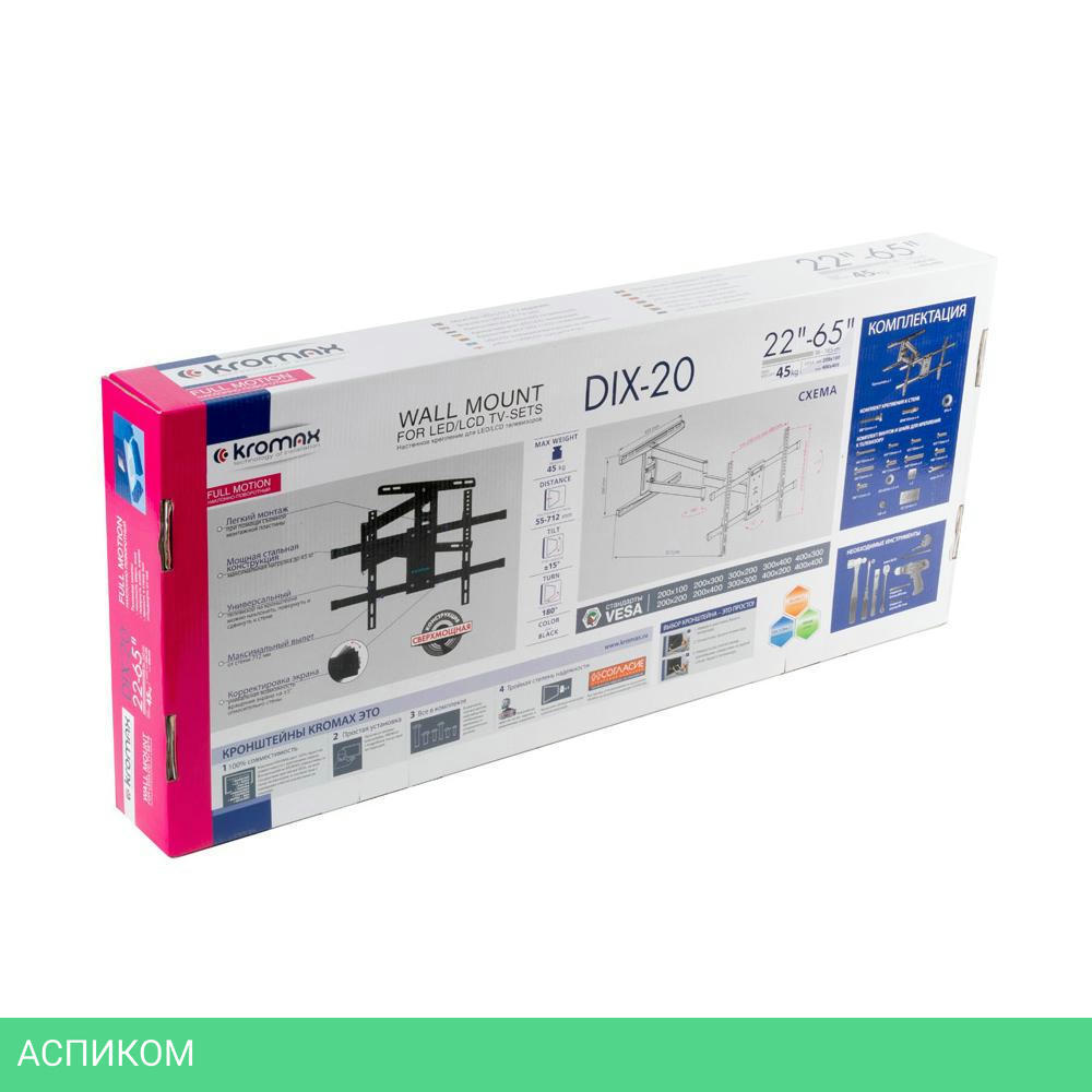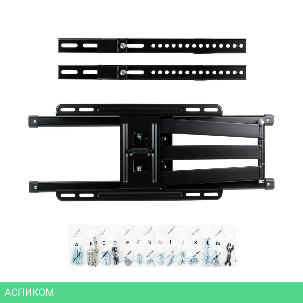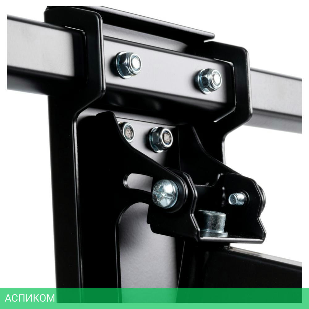 Легкий монтаж при помощи съемной монтажной пластины, мощная стальная конструкция максимальная нагрузка до 45 кг, универсальный телевизор на кронштейне можно наклонить, повернуть и сдвинуть к стене, максимальный вылет от стены 712 мм, корректировка экрана уникальная возможность вращения экрана на ±5° относительно стены