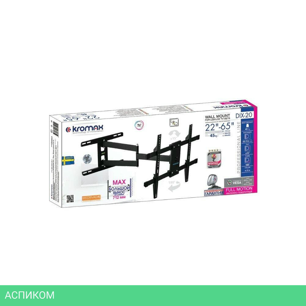 для телевизора / черный / настенный / 22.0 / 65.0 / 15 / 180.0