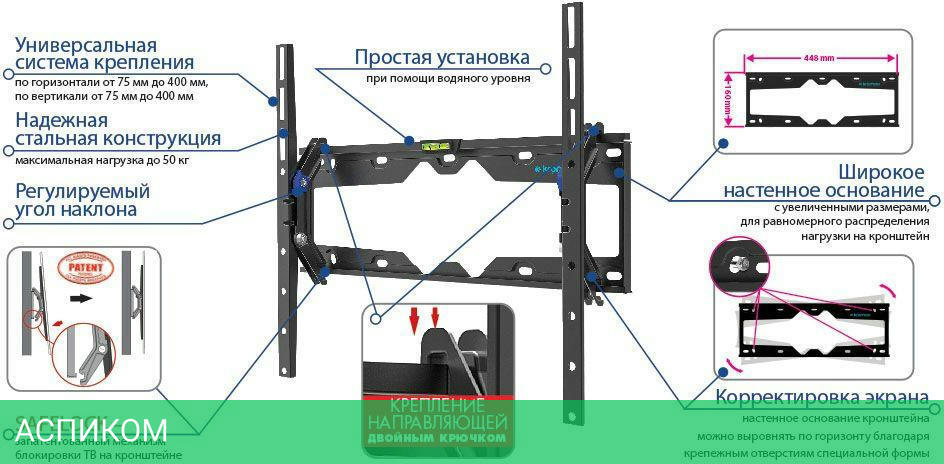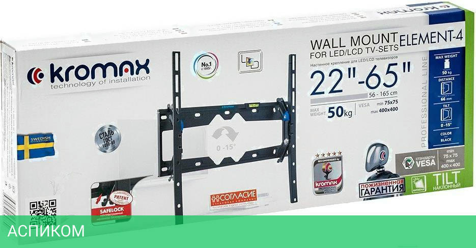 для телевизора / настенный / 22.0 / 65.0 / черный / 15 / 0.0