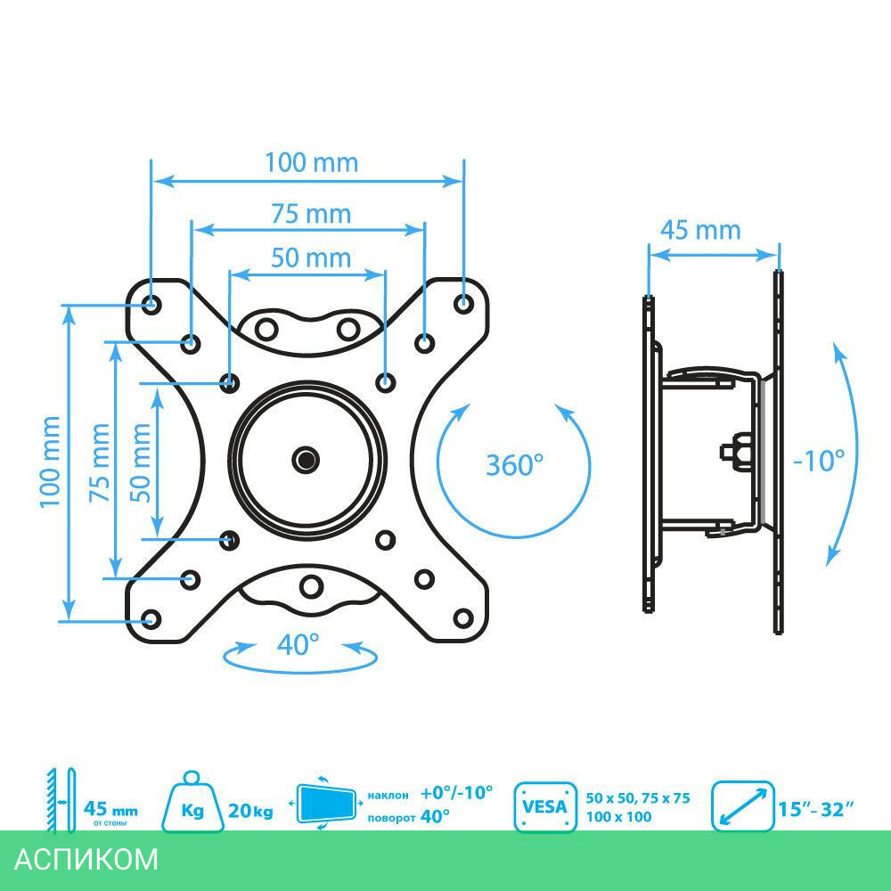 для монитора; для телевизора / настенный / 15.0 / 32.0 / черный / 10 / 40.0