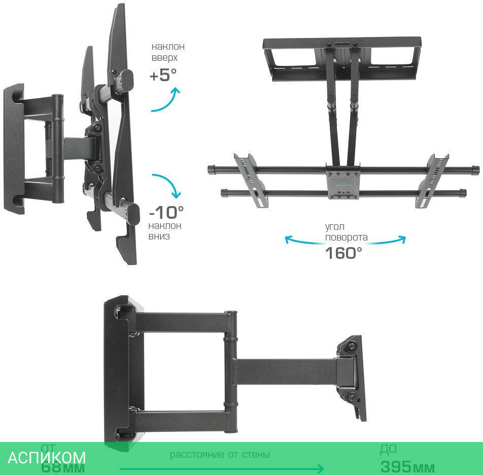 для телевизора / настенный / 32.0 / 65.0 / черный / 160.0