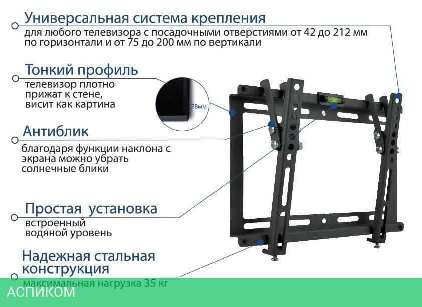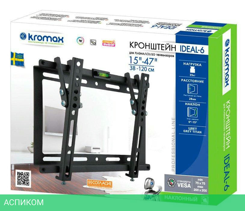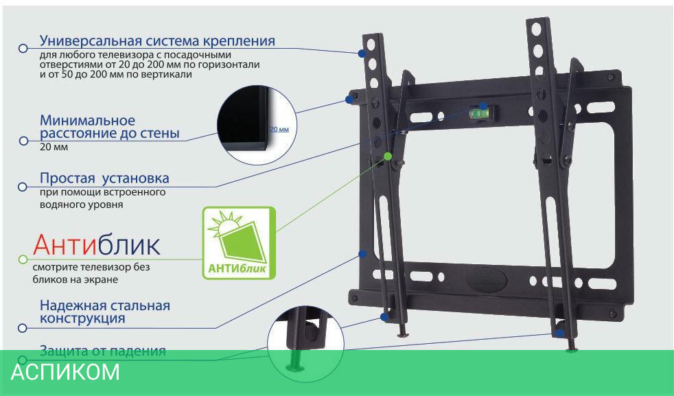 для телевизора / черный / настенный / 15.0 / 47.0 / 8