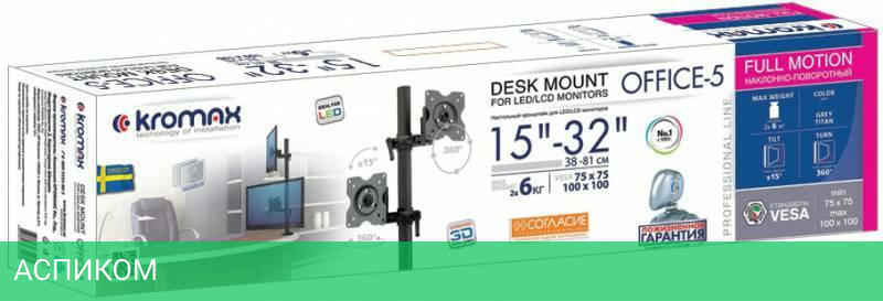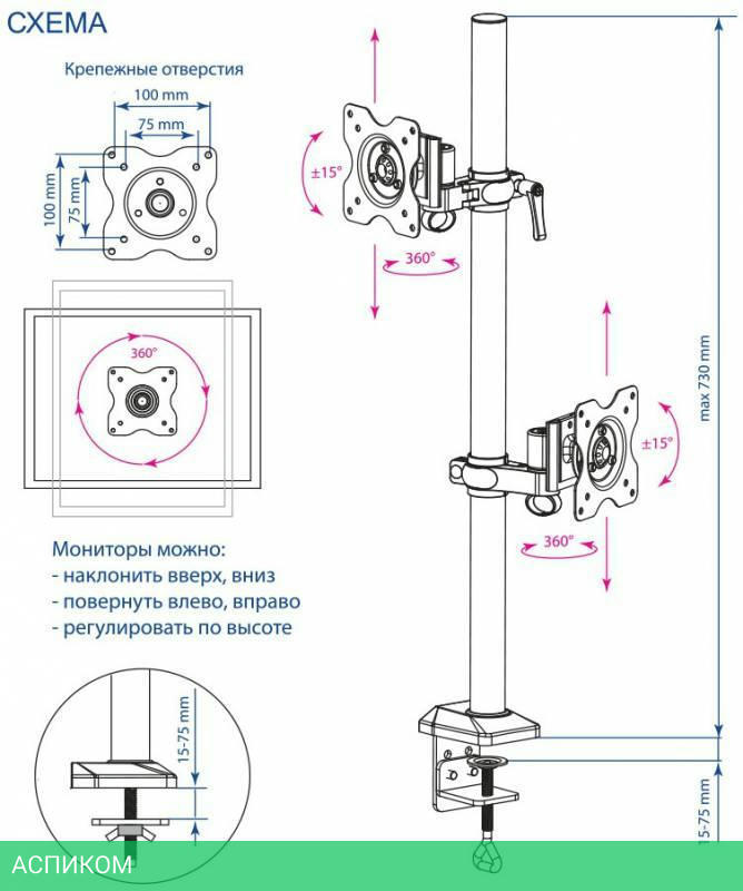 для монитора / настольный / 15.0 / 75.0 / темно-серый / 15 / 360.0