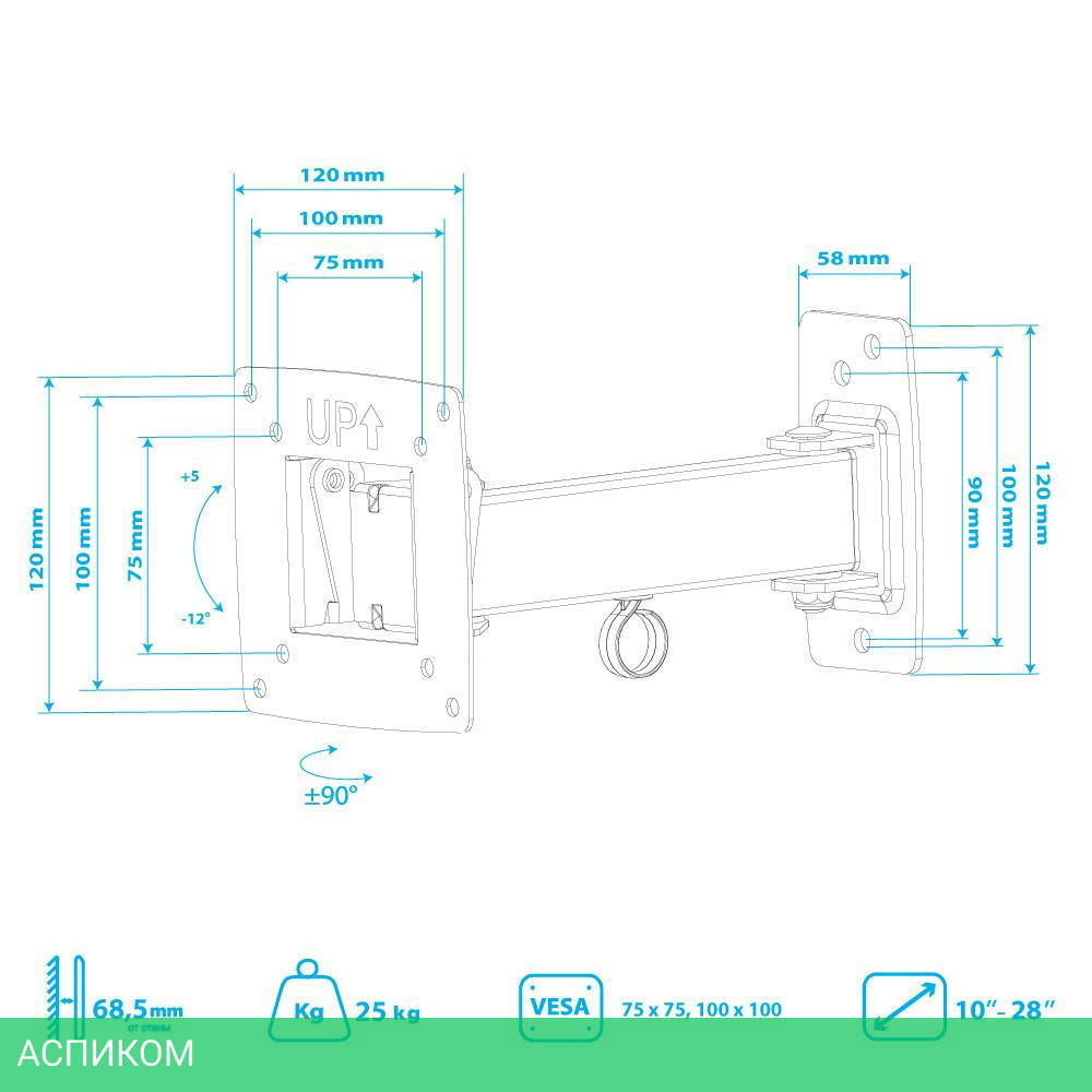 для телевизора / настенный / 10.0 / 28.0 / черный / 12 / 90.0