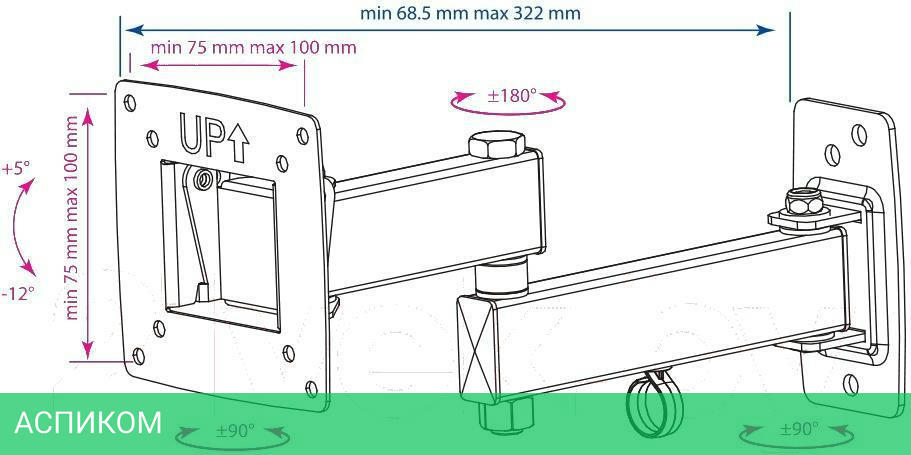для телевизора / настенный / 10.0 / 28.0 / черный / 12 / 90.0