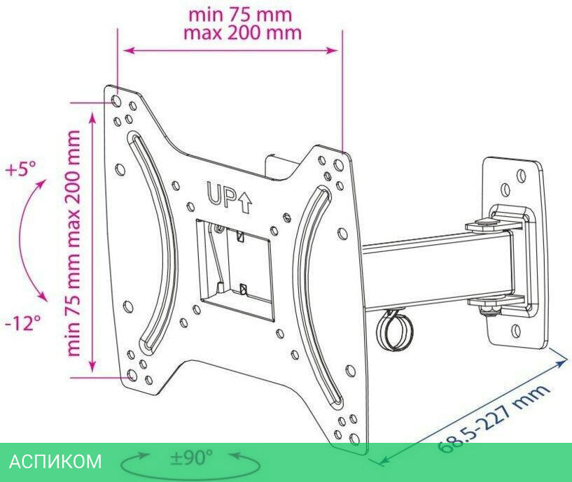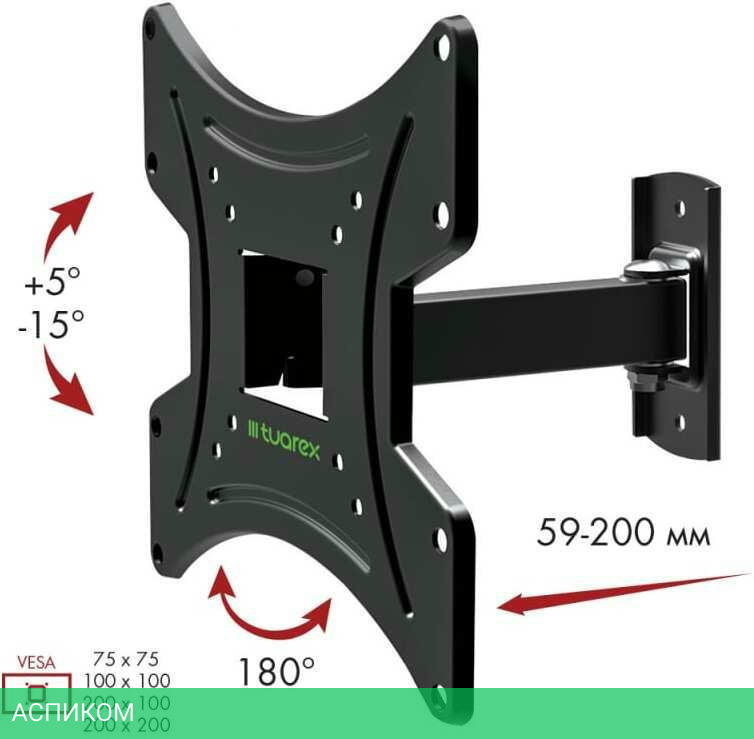 для телевизора / черный / настенный / 15.0 / 42.0 / 12 / 90.0