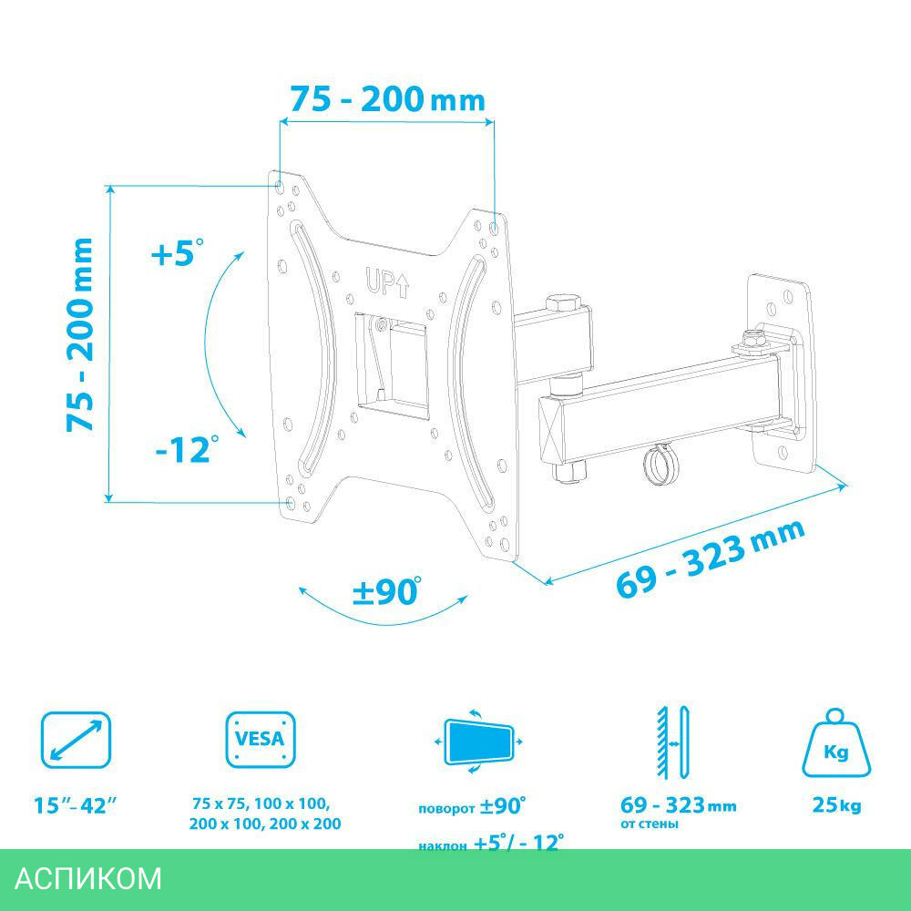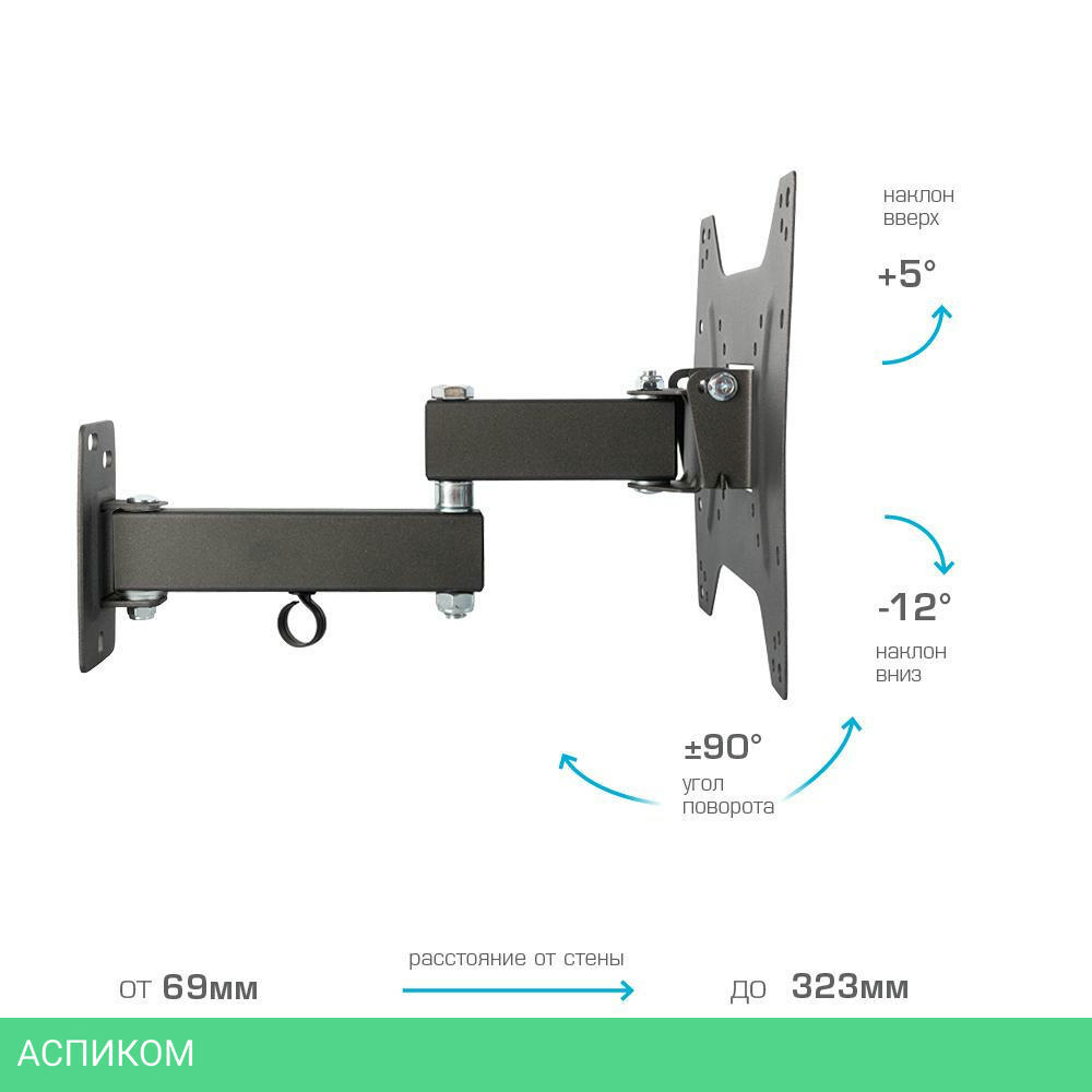 для телевизора / настенный / 15.0 / 42.0 / черный / 12 / 90.0
