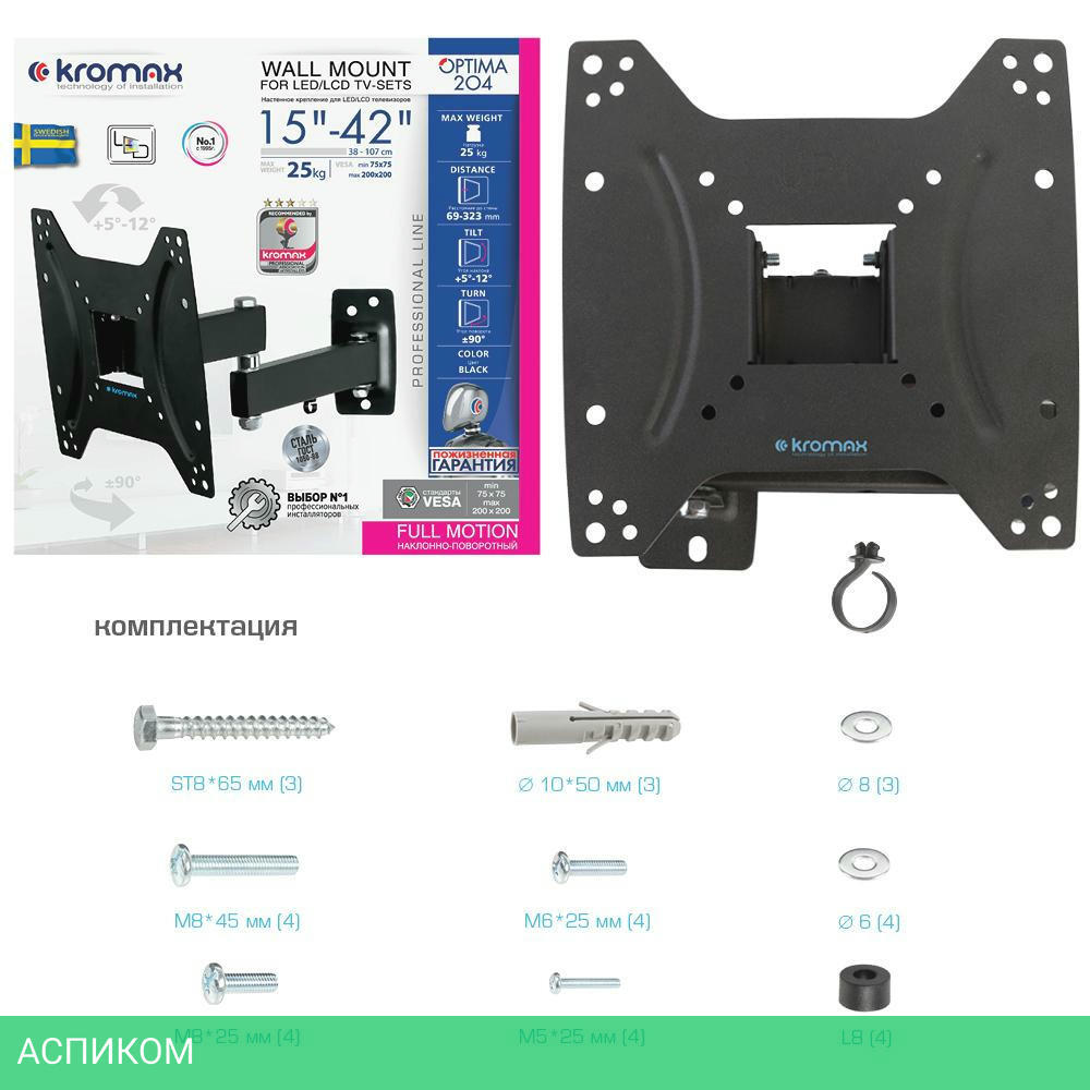 кронштейн для телевизора, комплект крепежа для установки ТВ, подробная инструкция на русском языке