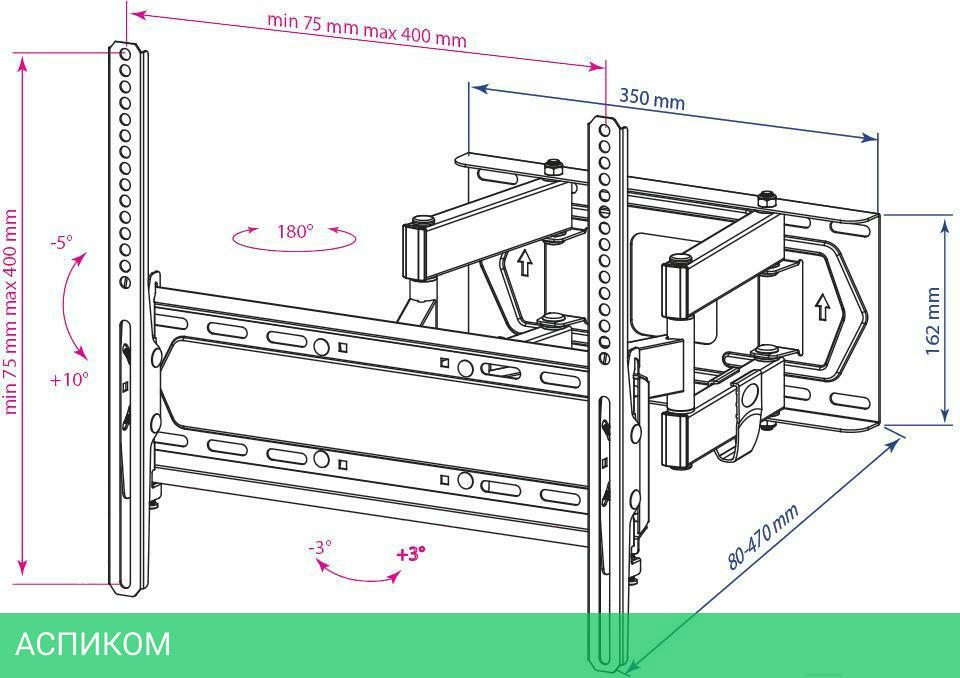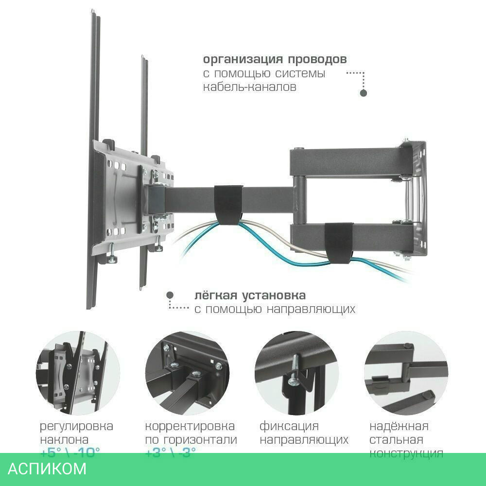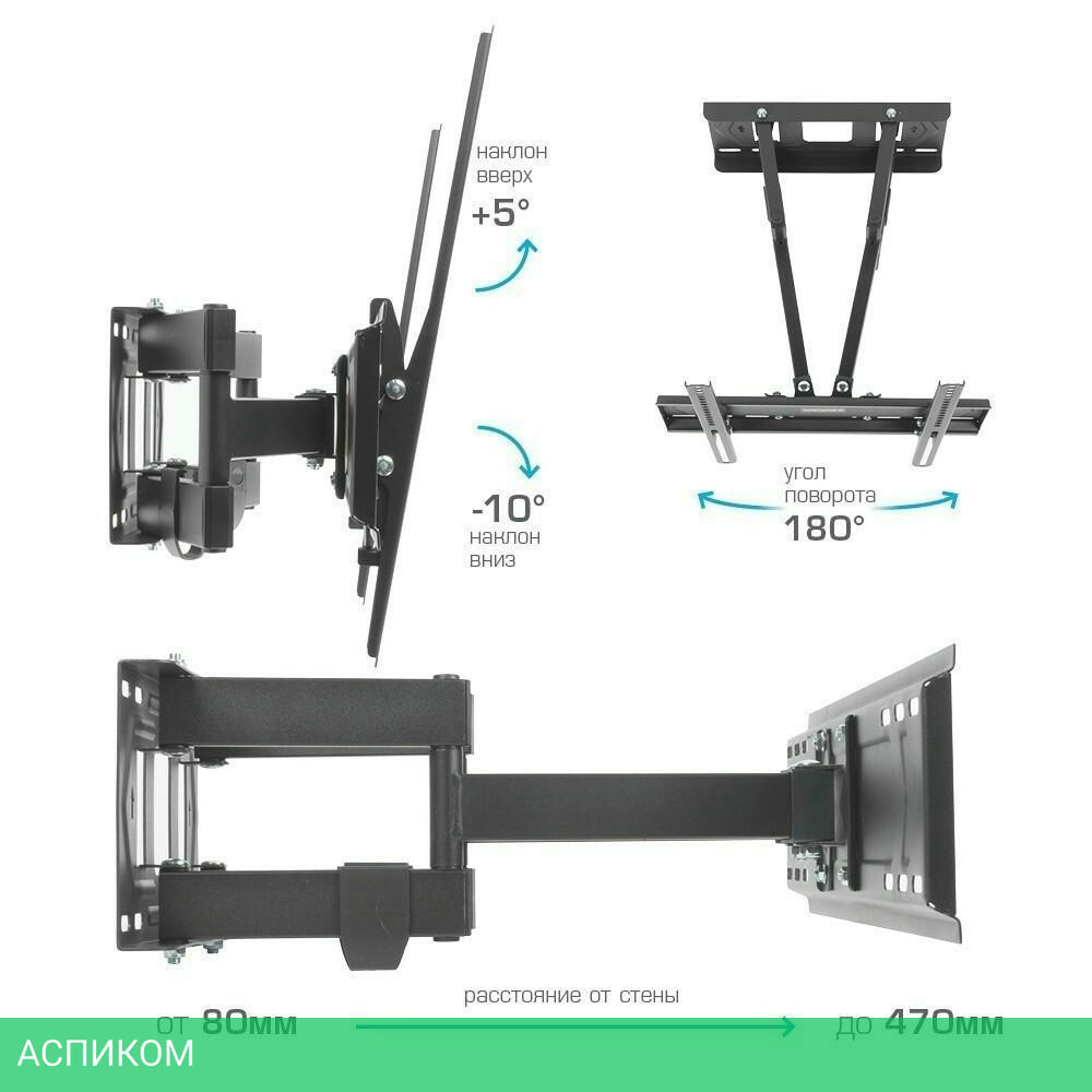 для телевизора / черный / настенный / 22.0 / 65.0 / 5 / 180.0