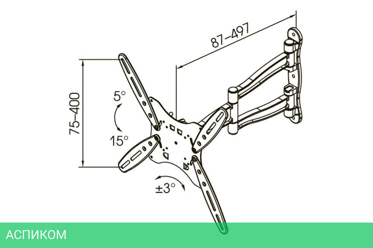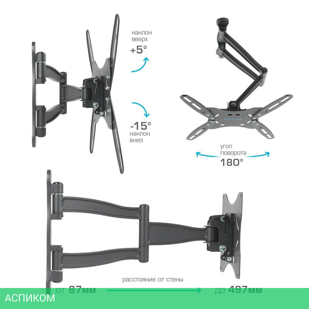 для телевизора / настенный / 15.0 / 55.0 / темно-серый / 15 / 180.0