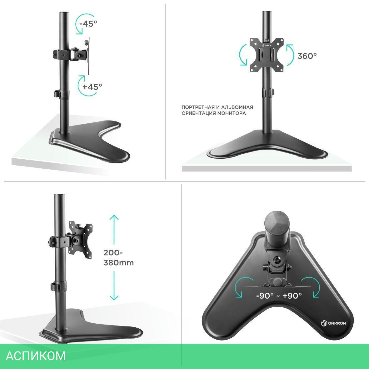 для монитора / настольный / 13.0 / 32.0 / черный / 45 / 180.0