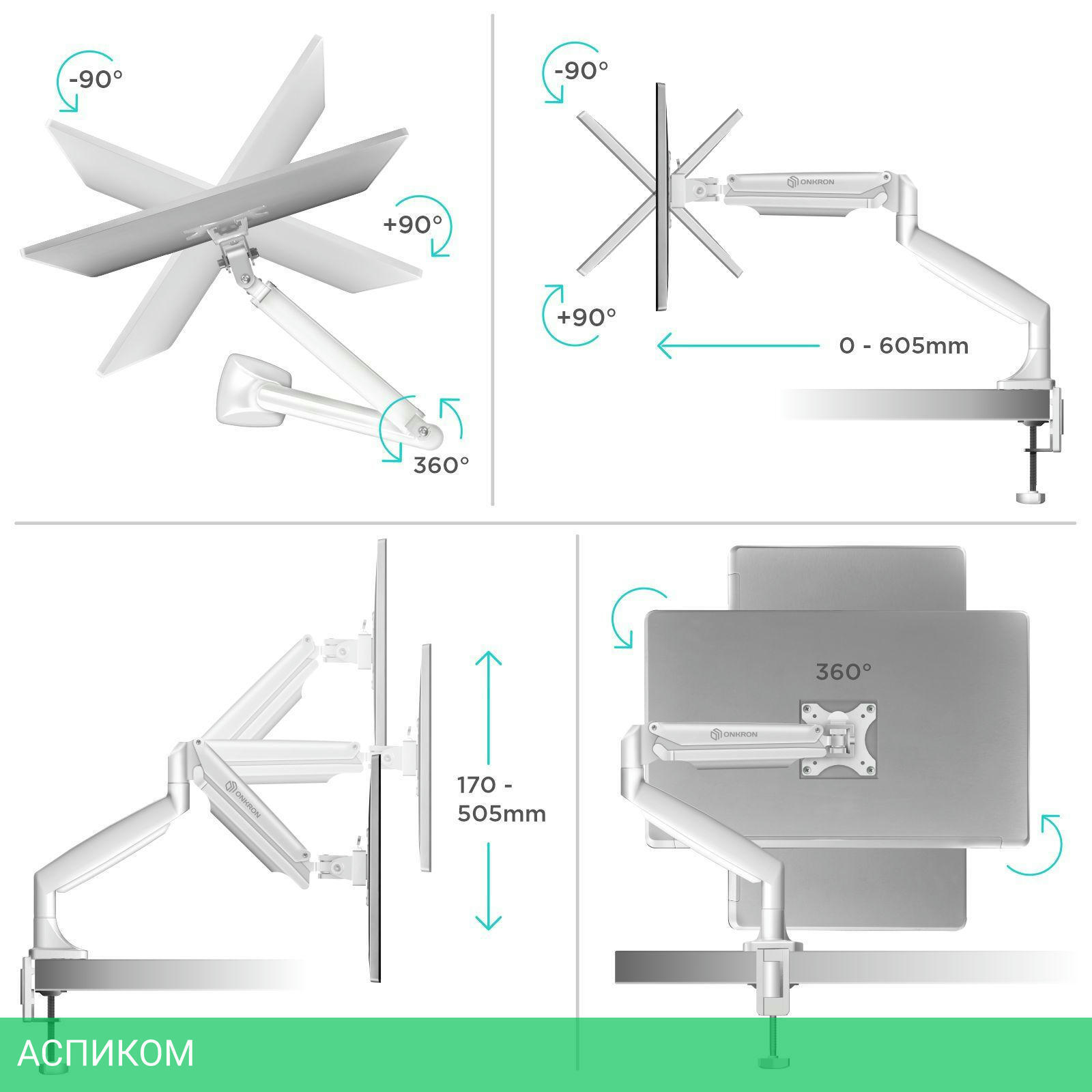 для монитора / настольный / 17.0 / 17.0 / белый / 35 / 360.0