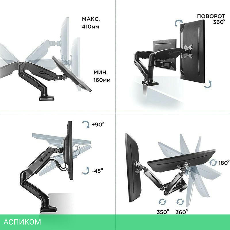 для монитора / черный / настольный / 13.0 / 32.0 / 90 / 180.0