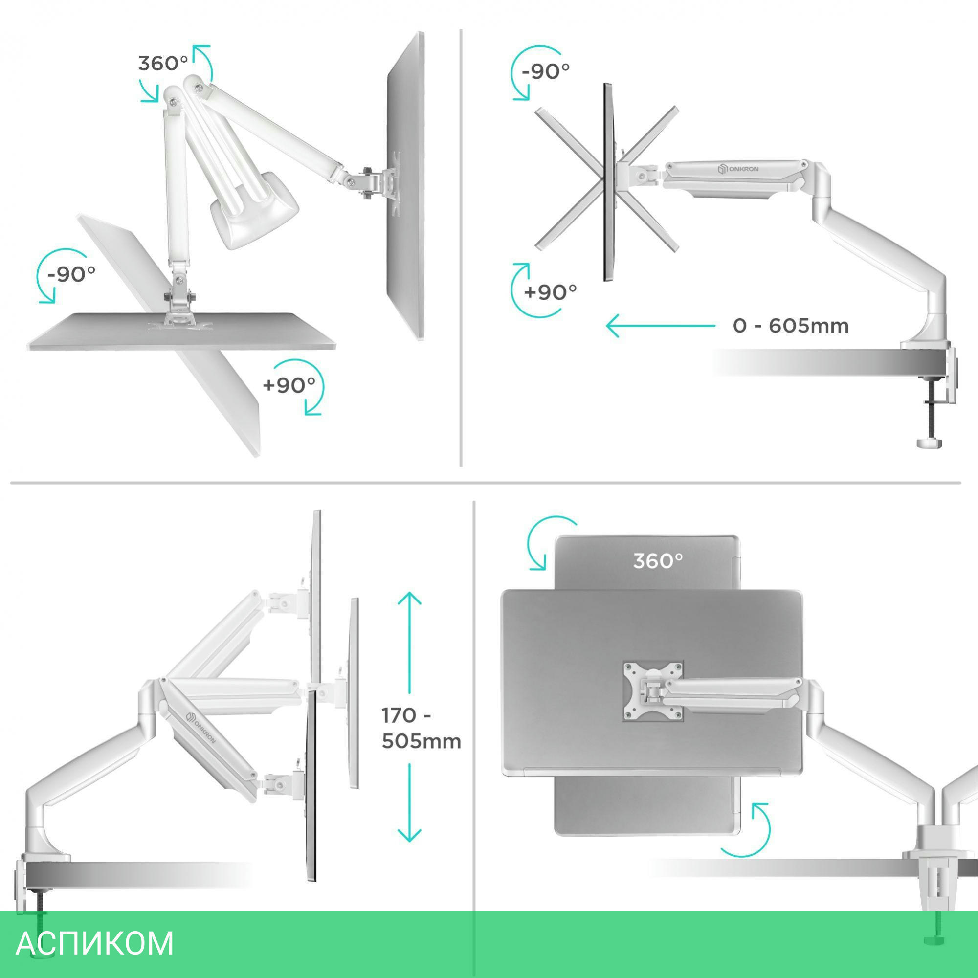 для монитора / настольный / 13.0 / 32.0 / 90 / 360.0 / белый