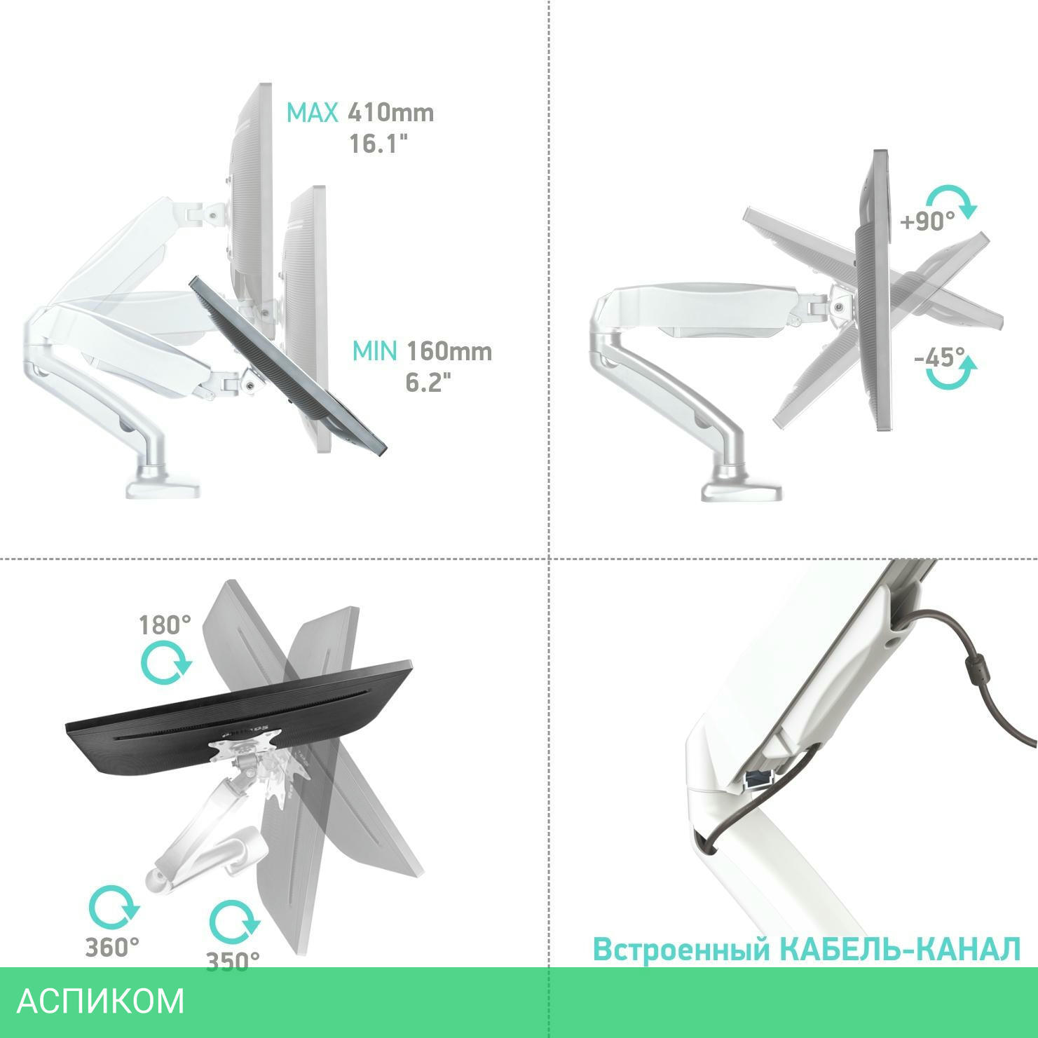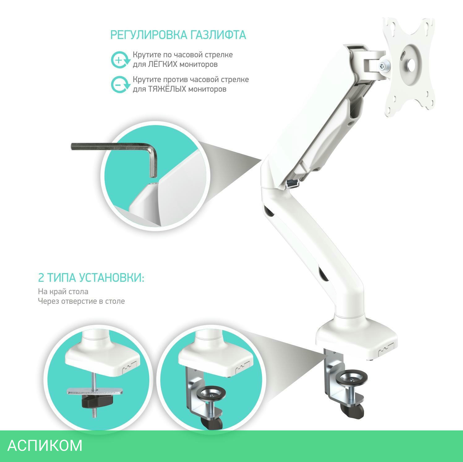 для монитора / настольный / 13.0 / 32.0 / белый / 90 / 360.0