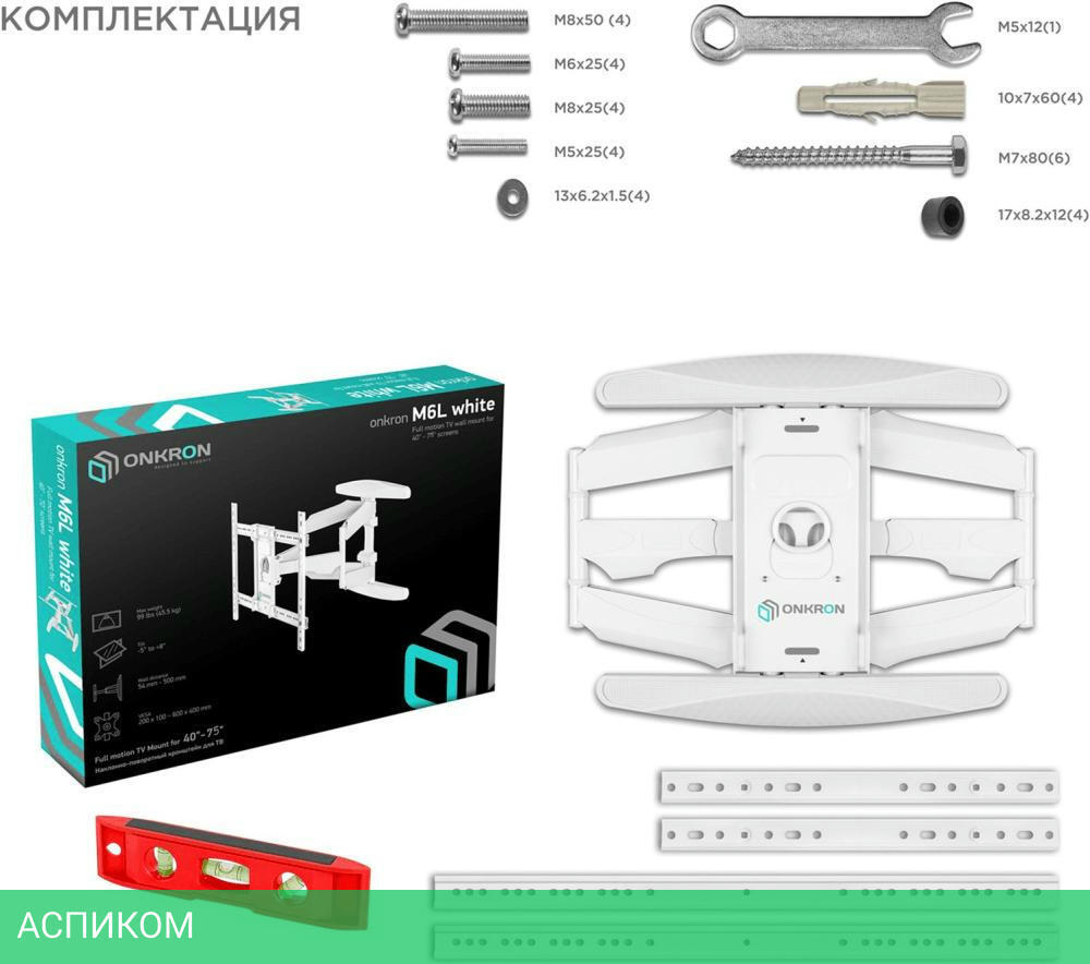 для телевизора / настенный / 40.0 / 75.0 / 13 / 140.0 / белый