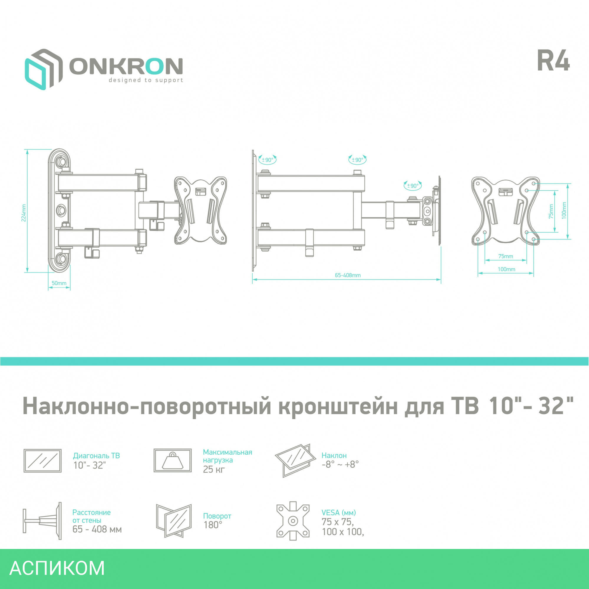 для телевизора / настенный / 10.0 / 27.0 / черный / 8 / 180.0
