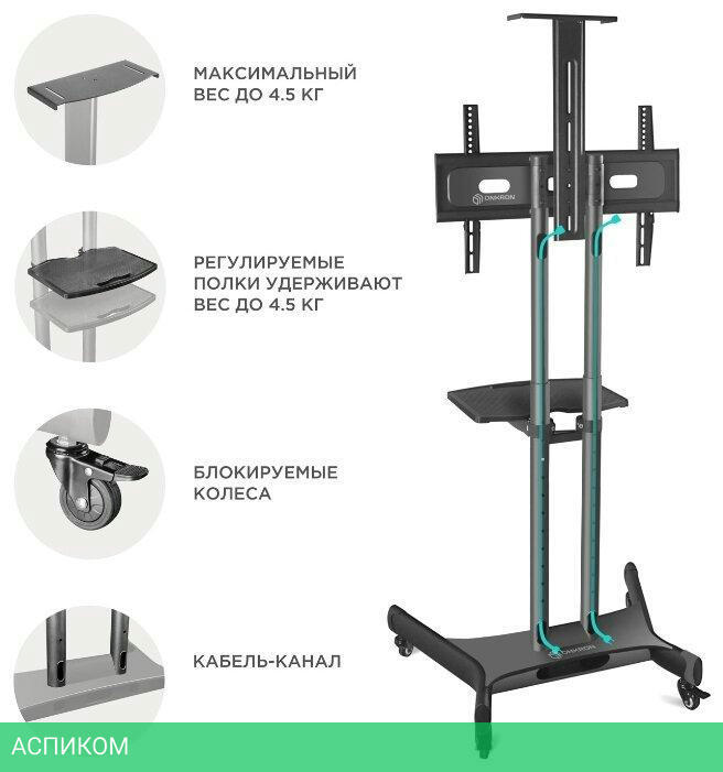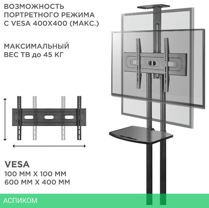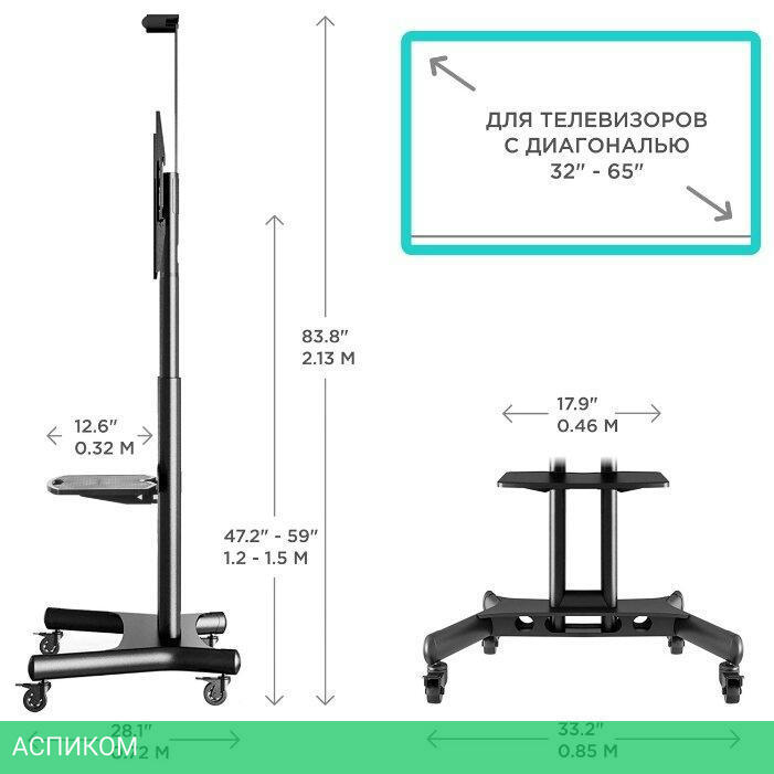 для телевизора / черный / напольный / 32.0 / 65.0