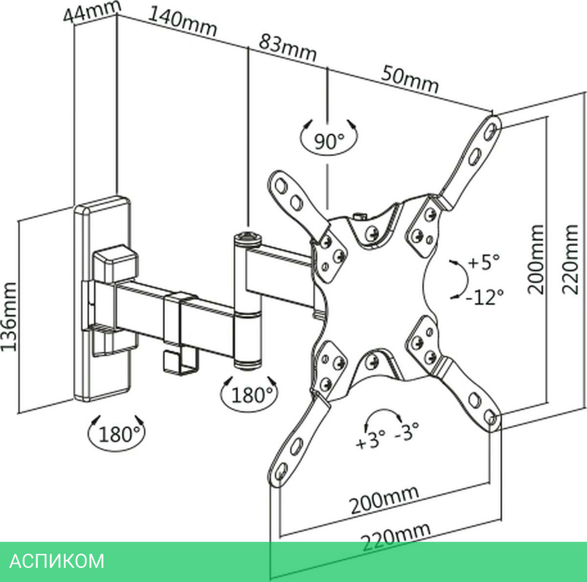 для телевизора / настенный / 13.0 / 42.0 / 12 / 45.0 / черный