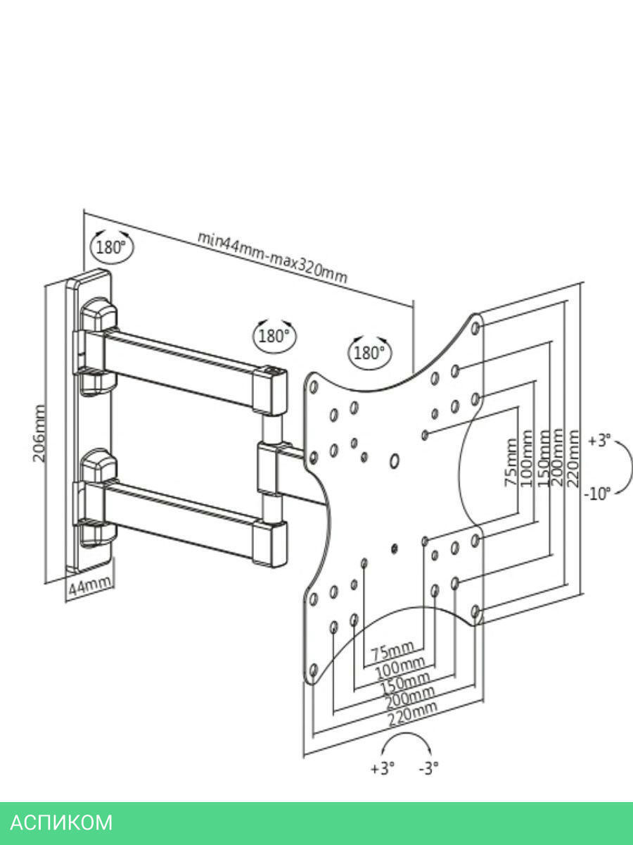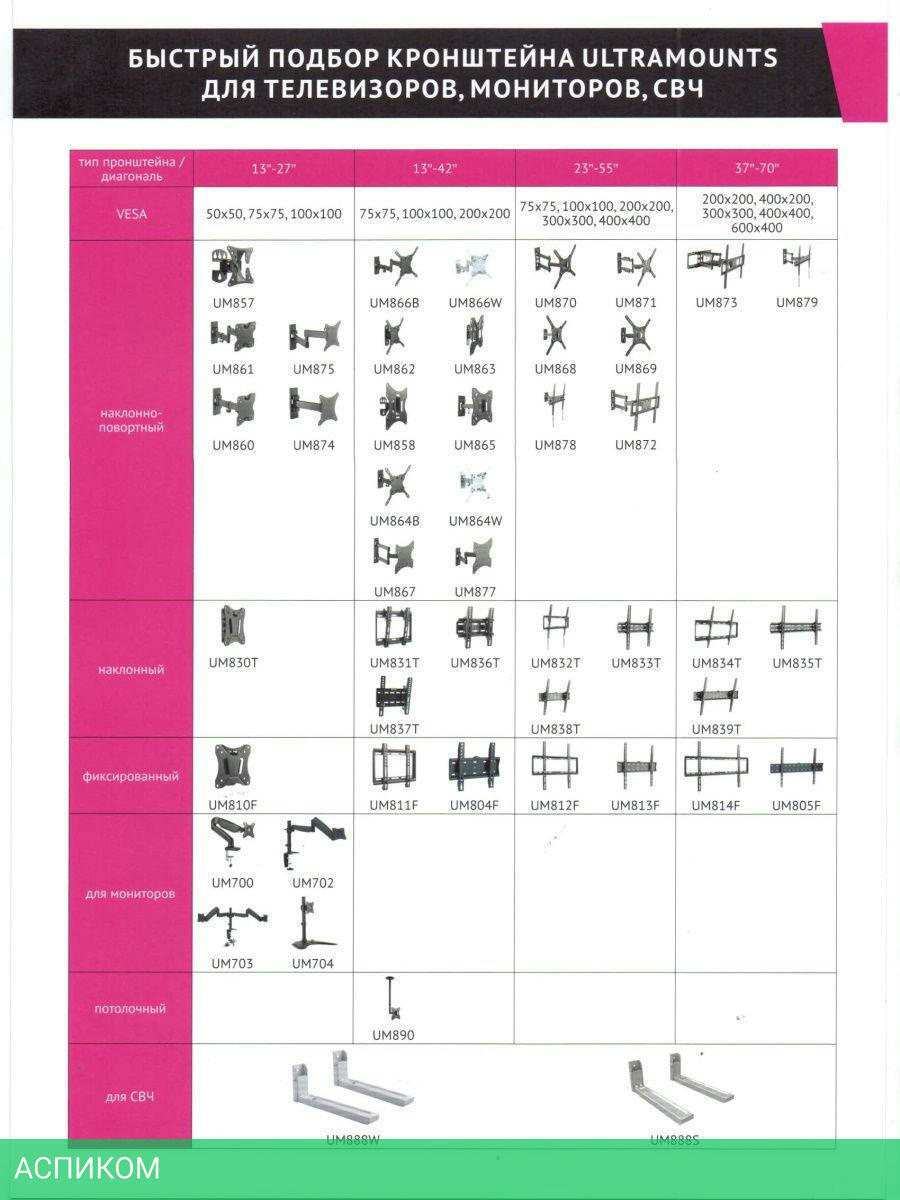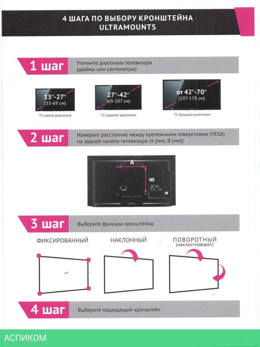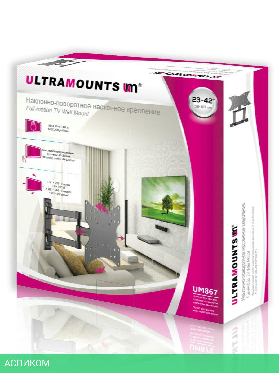 для телевизора / настенный / 23.0 / 42.0 / черный / 10 / 90.0