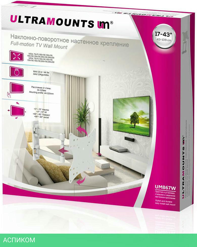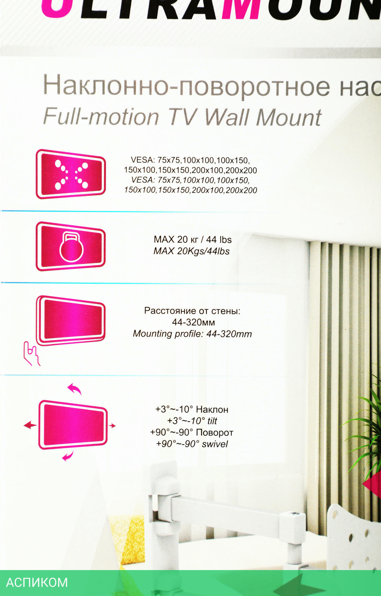 для телевизора / настенный / 17.0 / 43.0 / белый / 10 / 90.0
