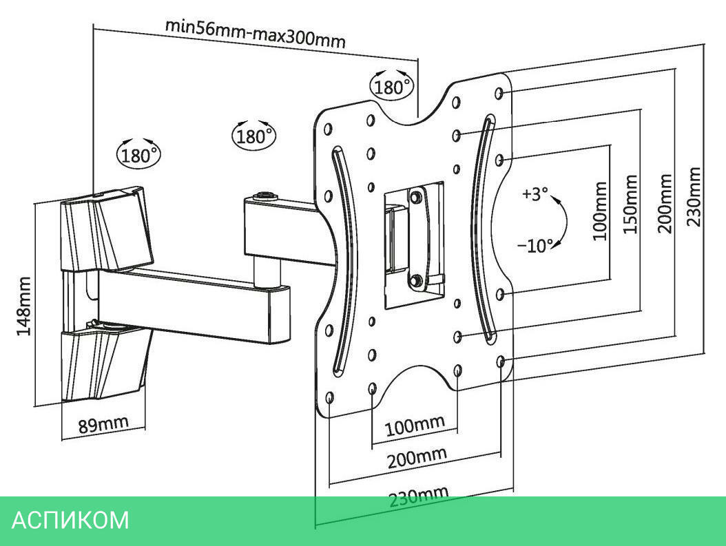 для телевизора / настенный / 23.0 / 43.0 / черный / 10 / 90.0