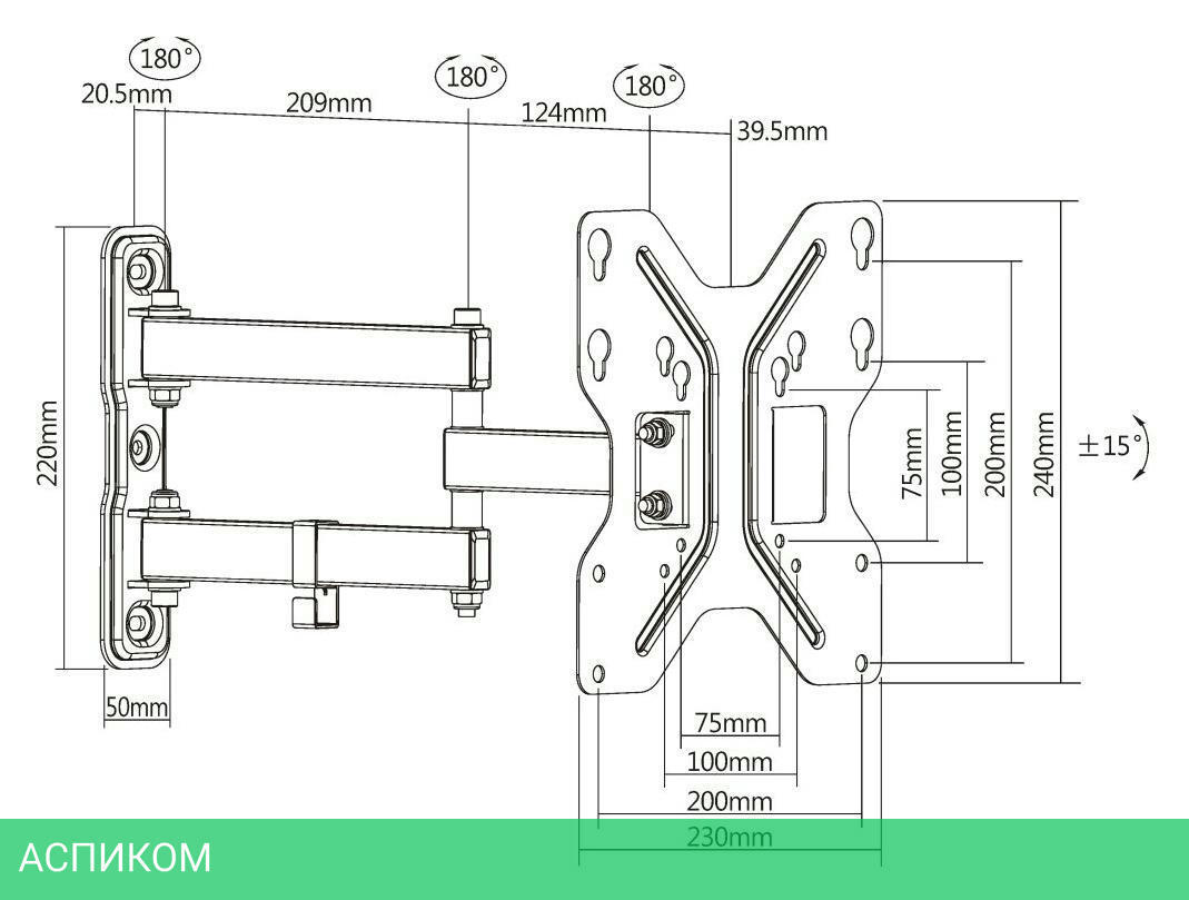 для телевизора / настенный / 23.0 / 43.0 / черный / 15 / 90.0