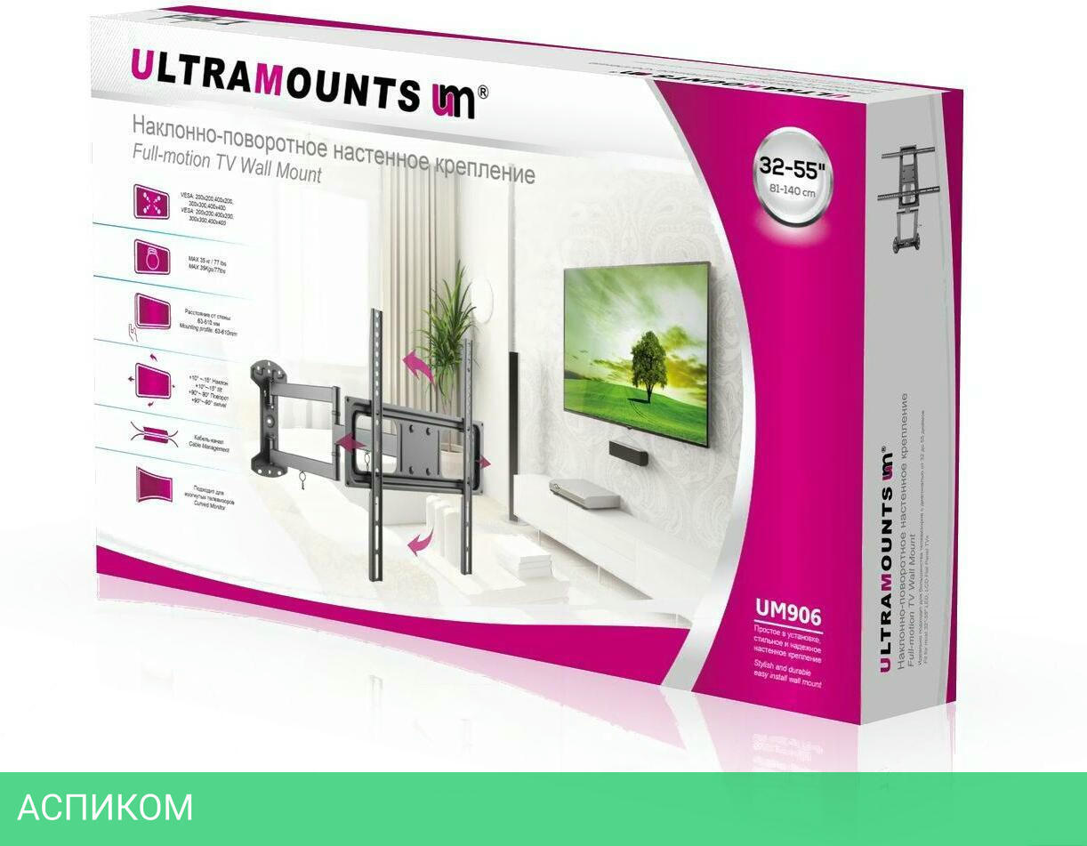 для телевизора / настенный / 32.0 / 55.0 / черный / 15 / 90.0
