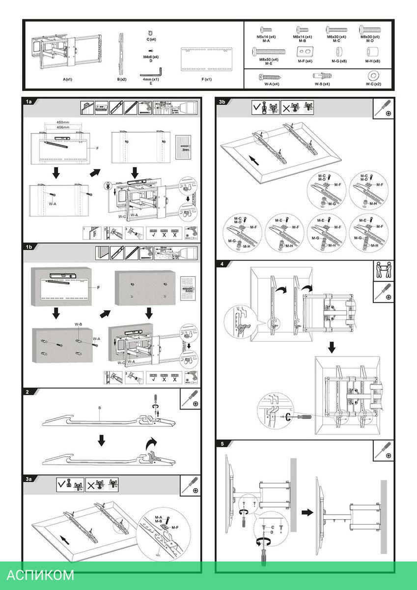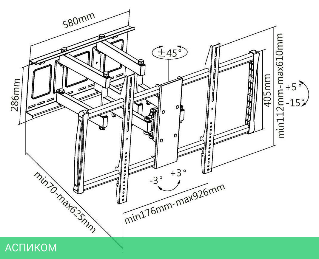 для телевизора / черный / настенный / 60.0 / 100.0 / 15 / 45.0