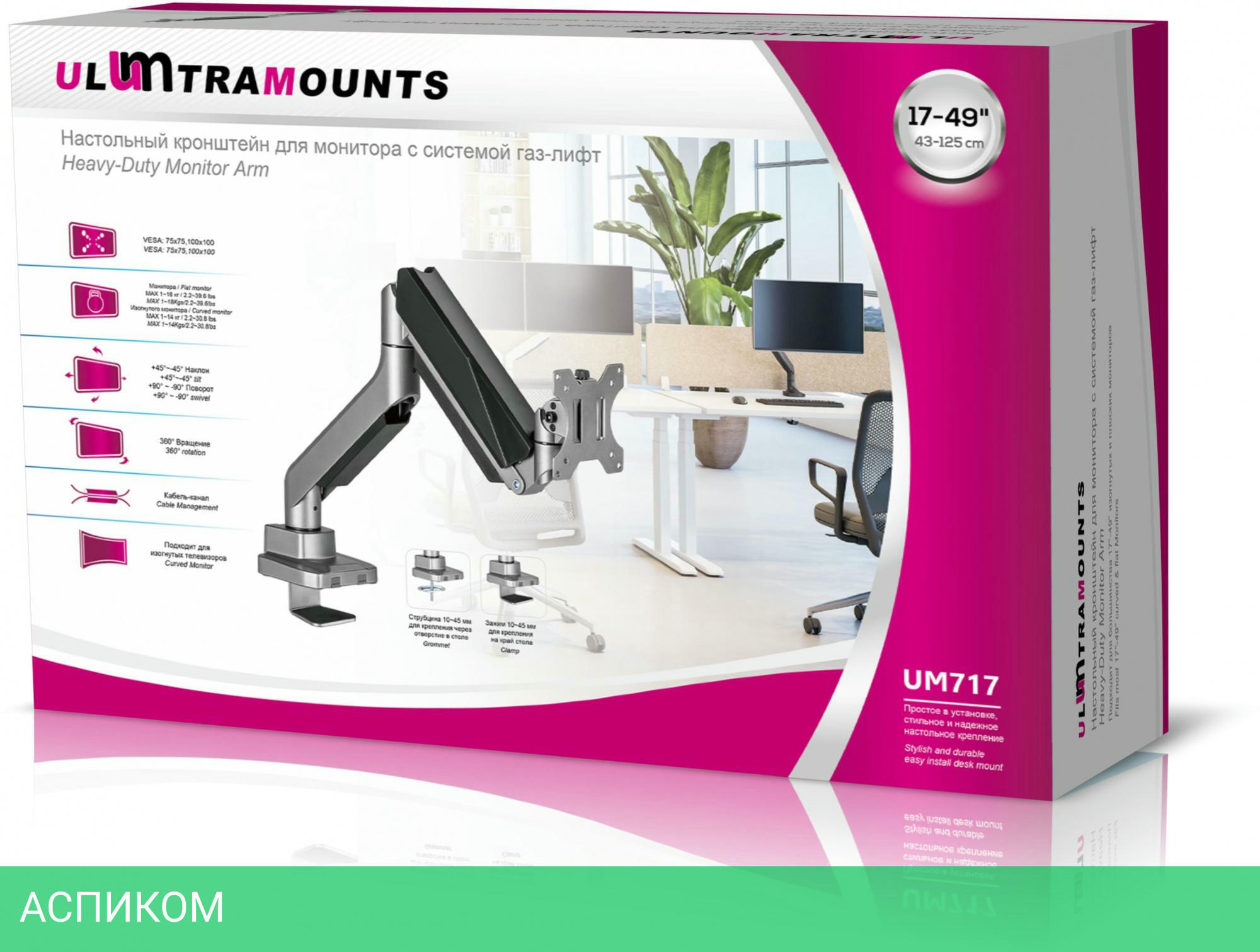 для монитора / настольный / 17.0 / 49.0 / серебристый / 45 / 180.0