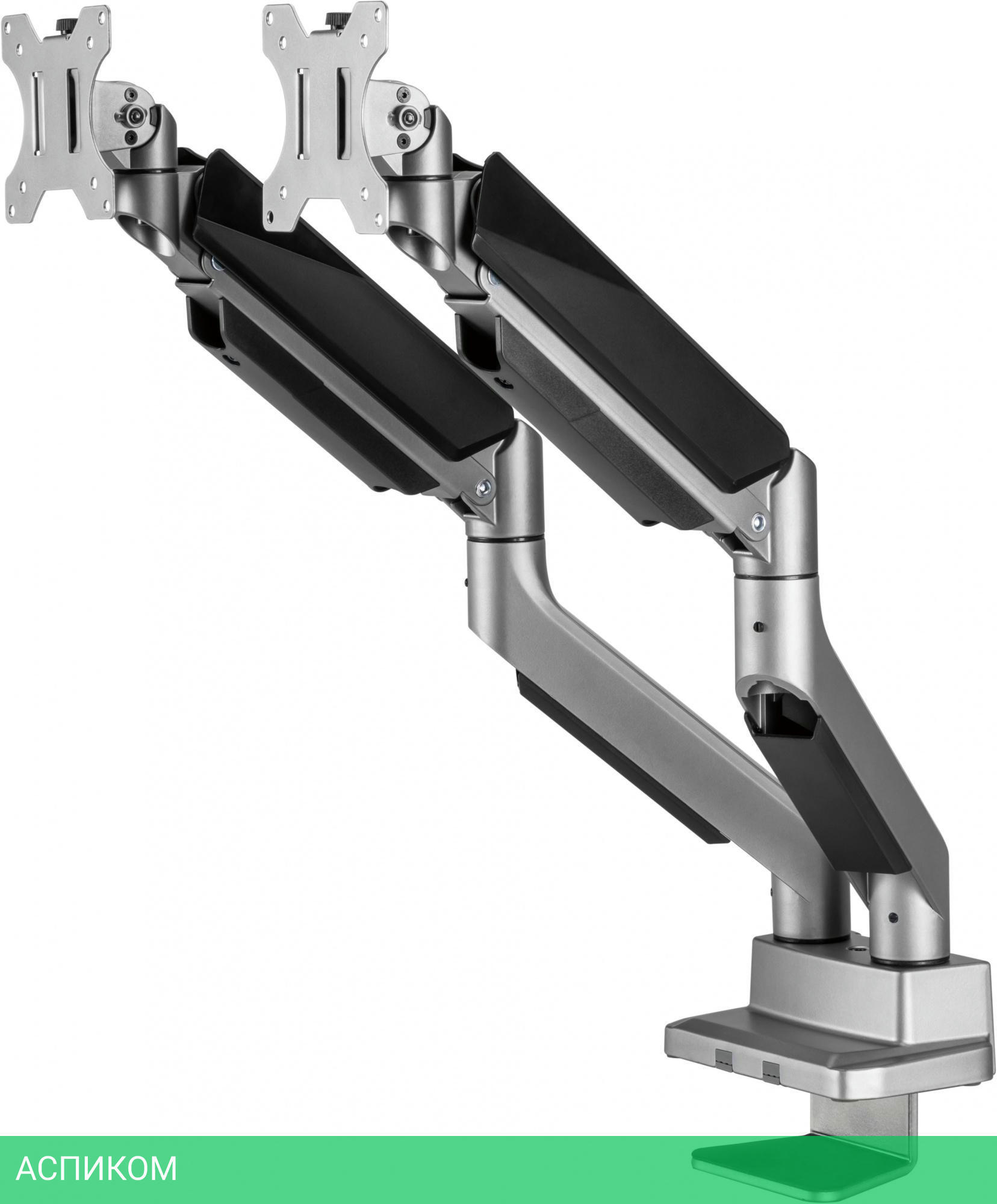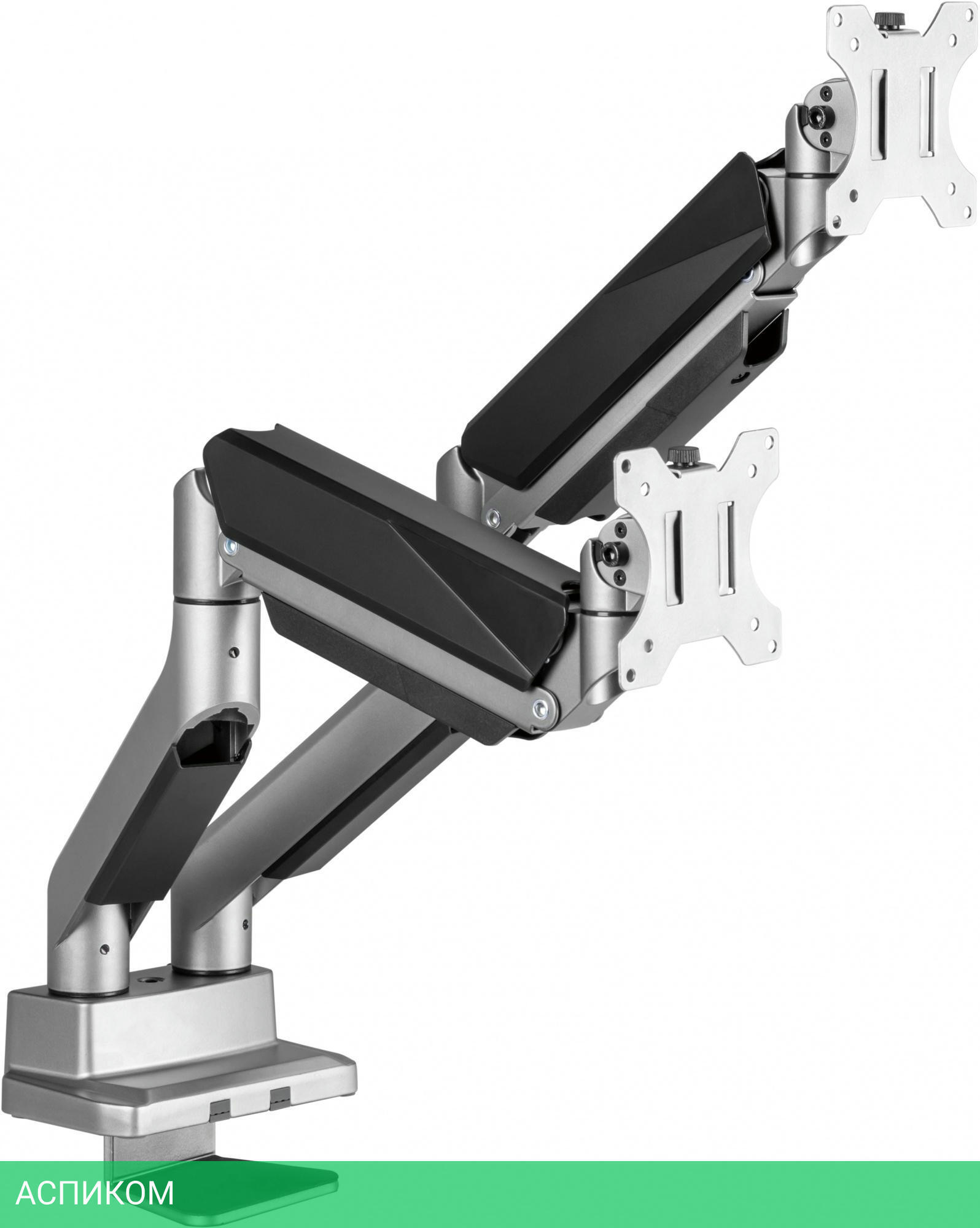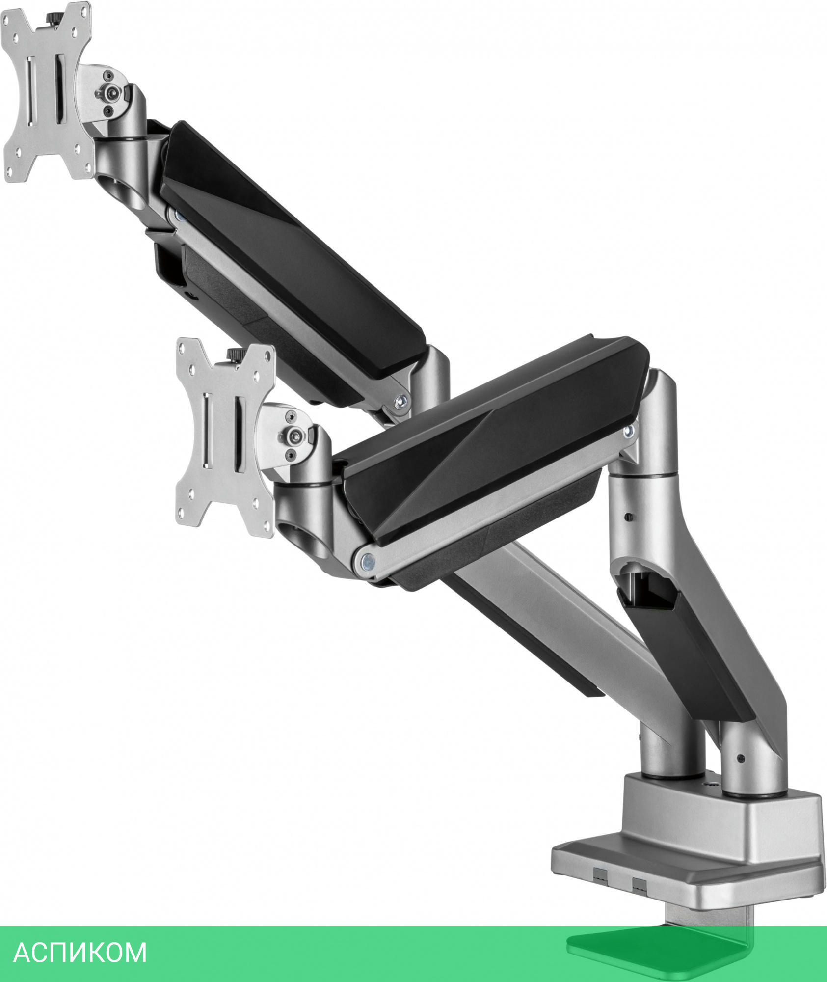 Настольный кронштейн для монитора с системой газ-лифт. Конструкция со свободным наклоном позволит легко регулировать наклон вперед или назад для лучшего обзора и уменьшения бликов.