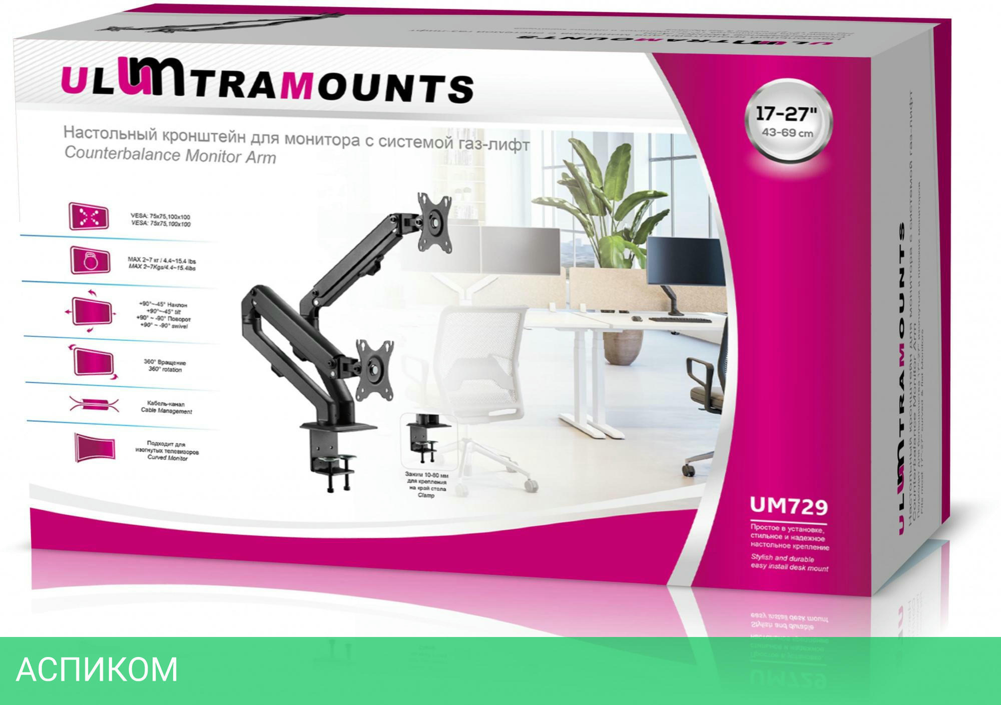 для монитора / настенный / 17.0 / 27.0 / черный / 90 / 180.0