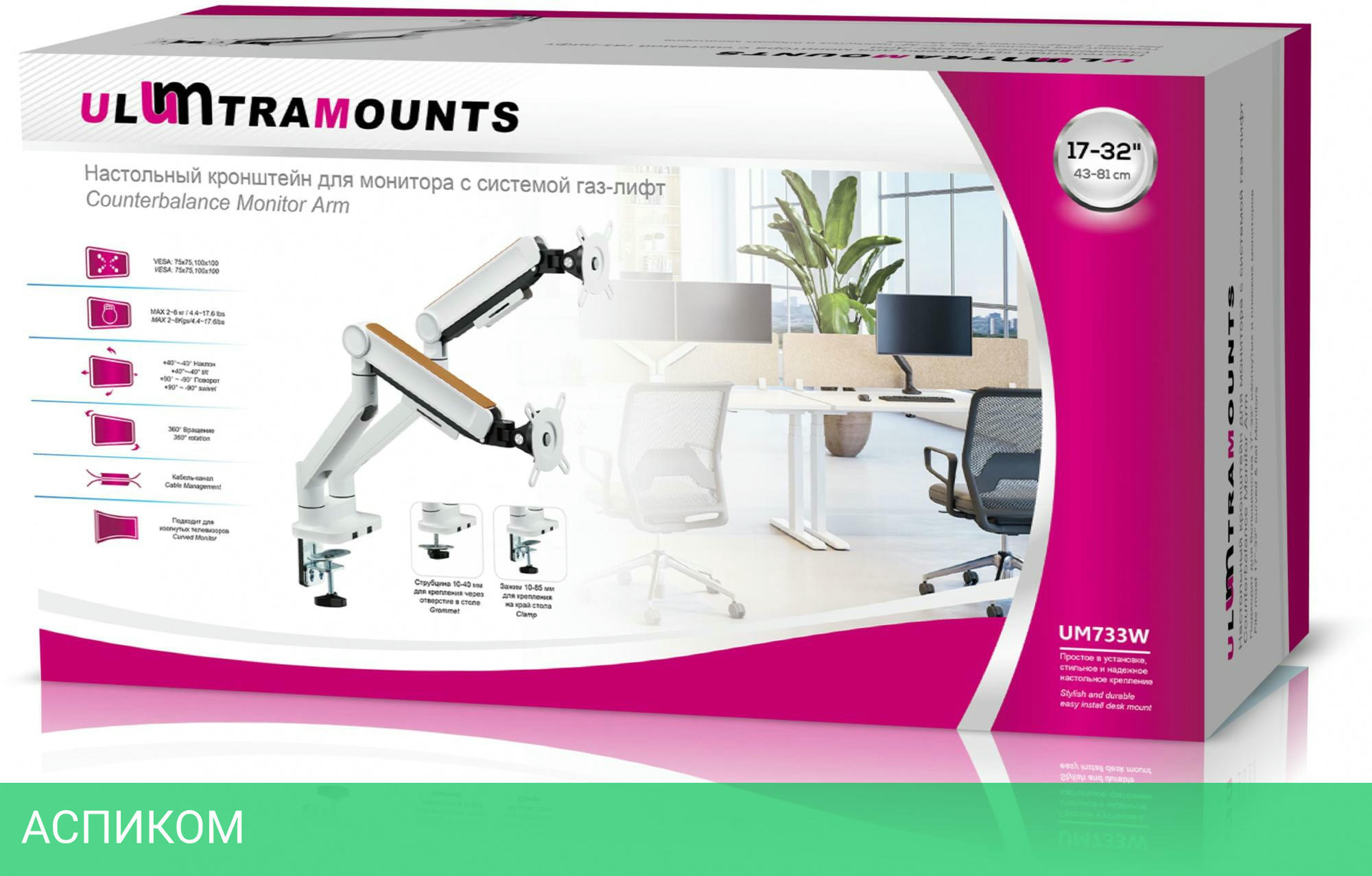 для монитора / белый / настенный / 17.0 / 32.0 / 40 / 180.0